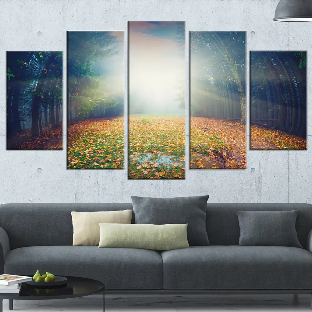 "Rising Sun Over Arched Forest" Landscape Photo Wall Art, 5 Panels, 60"x32"