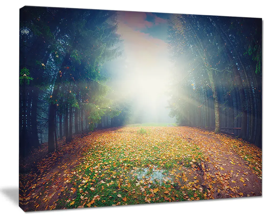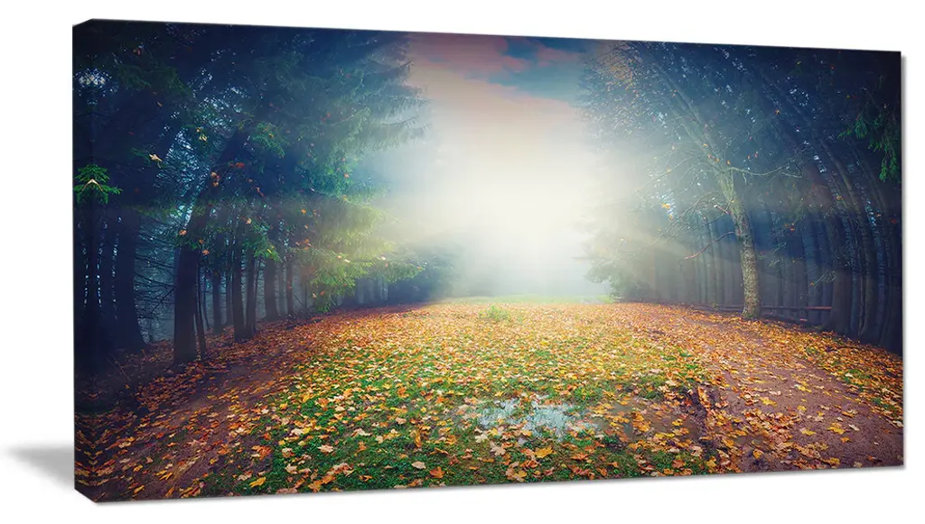 Bring contemporary abstraction to your home with this large 36W x 28H Metal Wall Art. This Rising Sun Over Arched Forest Metal Artwork makes it the focal point of any room or office. - White gloss coating ensures colors are extra vibrant with light reflection.- Aluminum grade sheet metal with 1-inch mounting frame on the back giving the illusion that the artwork is floating on the wall.- Mounting brackets are included along with instructions.- High quality digital images are created directly into a glossy aluminum panel producing a stunning and captivating print into the glossy finish of the metal.- Water, fire and scratch resistant HD aluminum panels.- Looks better than any photo paper and guaranteed to last at least 20 years- Easy to clean with a microfiber cloth. Colors are far superior to regular canvas art. - Easy to hang