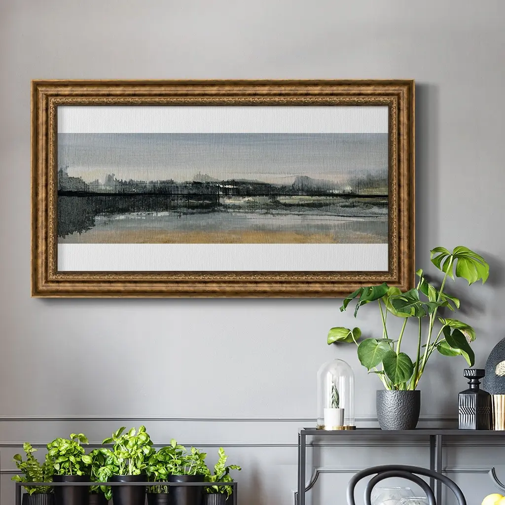 River Cross Premium Framed Canvas- Ready To Hang - 18x34 - Pewter