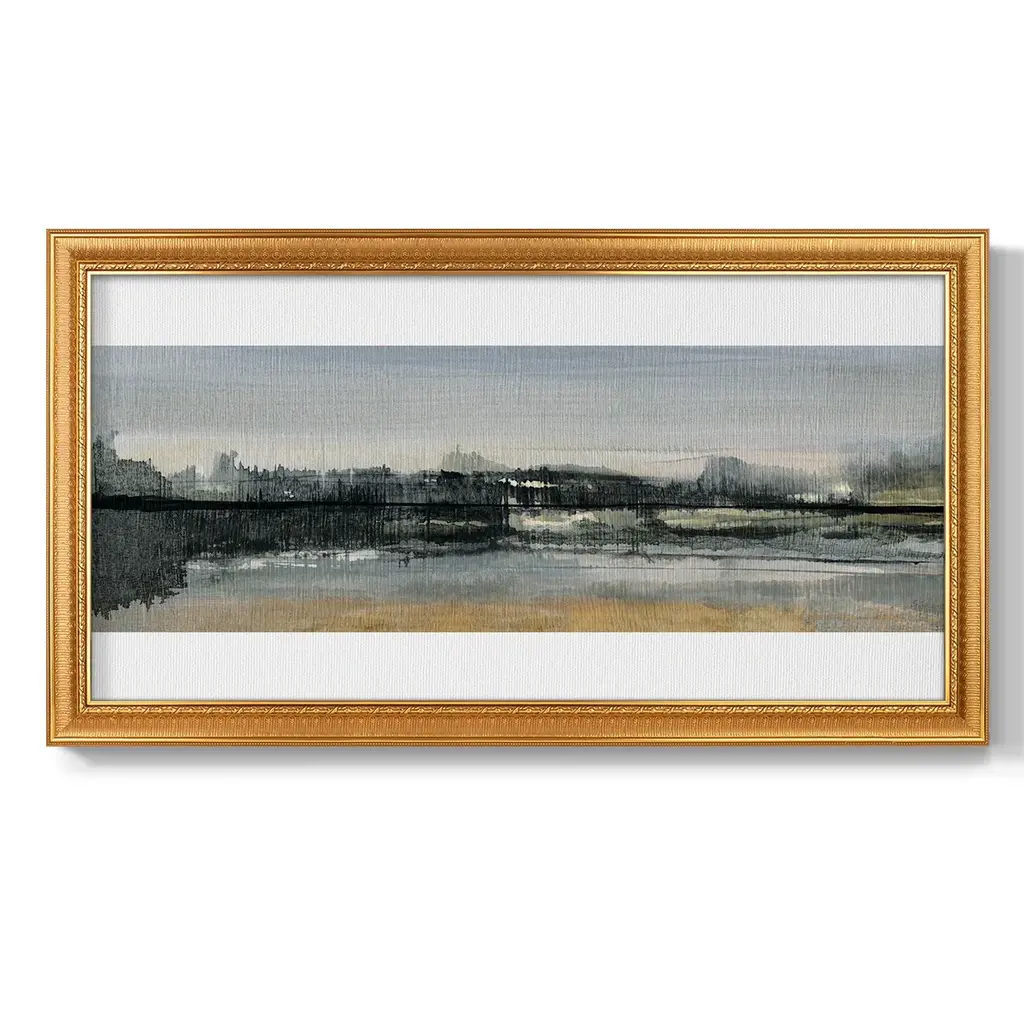 River Cross Premium Framed Canvas- Ready to Hang A Premium Framed Canvas created to last. Framed in distressed wood and available in an array of sizes and colors Featuring a beveled a solid wood stretcher bar, each piece comes ready to hand 3 SIZES AVAILABLE 21''X37'' - Overall Size 25''X45'' - Overall Size 29''x53'' - Overall Size Each piece is made to order. Each piece comes with hanging hardware. Made in the USA Ready to Hang Giclee Paper Print Acrylic Glass Beveled Matt Board