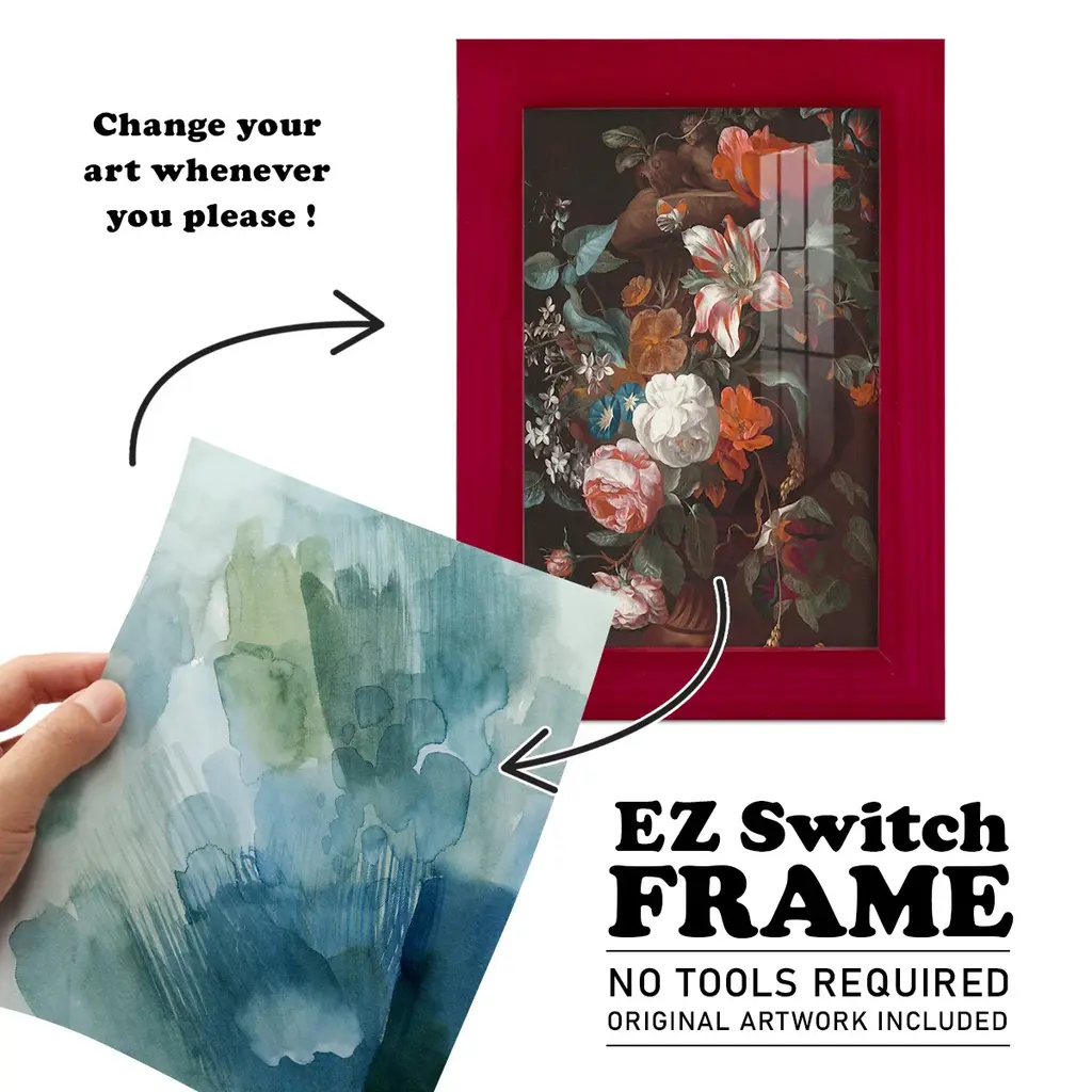 River Gleam II -EZ SWITCH Framed Print w/glass-Cherry Red A delightful, framed print. Featuring a solid wood frame with real wood glass. This premium print is giclee quality. In addition, every frame features a removable back and table top stand. This allows you to change your art in the future or to just stand the art on a table for a new look. We are sure you'll enjoy our new series of EZ SWITCH Framed Art. Solid Wood Frame Real Glass Removable / Replaceable Art Built in Tabletop Stand Sizes range from 4x6 up to 12x15 - buy just one or pair them up as sets as you see fit.