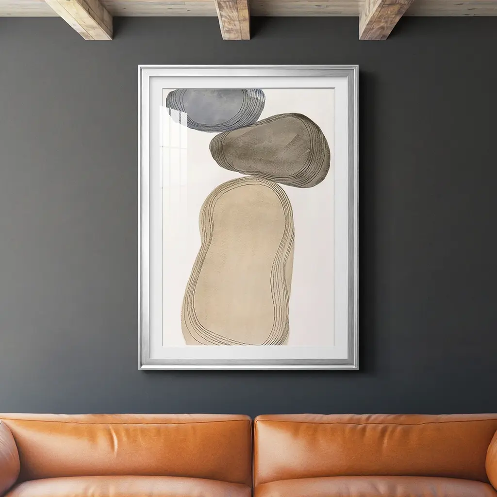 River Rocks Contour I Premium Framed Print - Ready to Hang A Premium Framed Print created to last. Framed in distressed wood and available in an array of sizes and colors Featuring a beveled a solid wood stretcher bar, each piece comes ready to hand 4 SIZES AVAILABLE 30.5''X42.5'' - Overall Size 26.5'X36.5'' - Overall Size 22.5''x30.5'' - Overall Size 18.5''x24.5'' - Overall Size Each piece is made to order. Each piece comes with hanging hardware. Made in the USA Ready to Hang Giclee Paper Print Acrylic Glass Beveled Matt Board