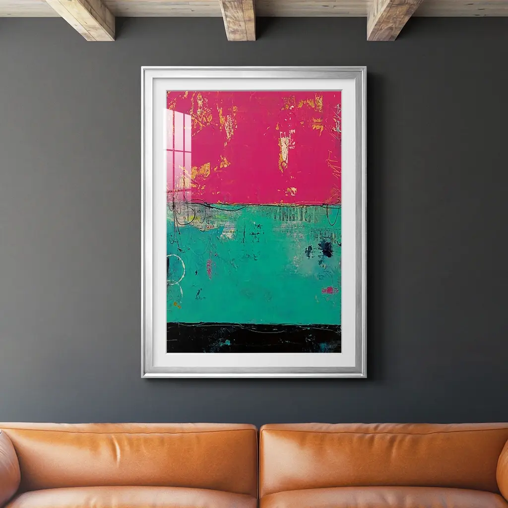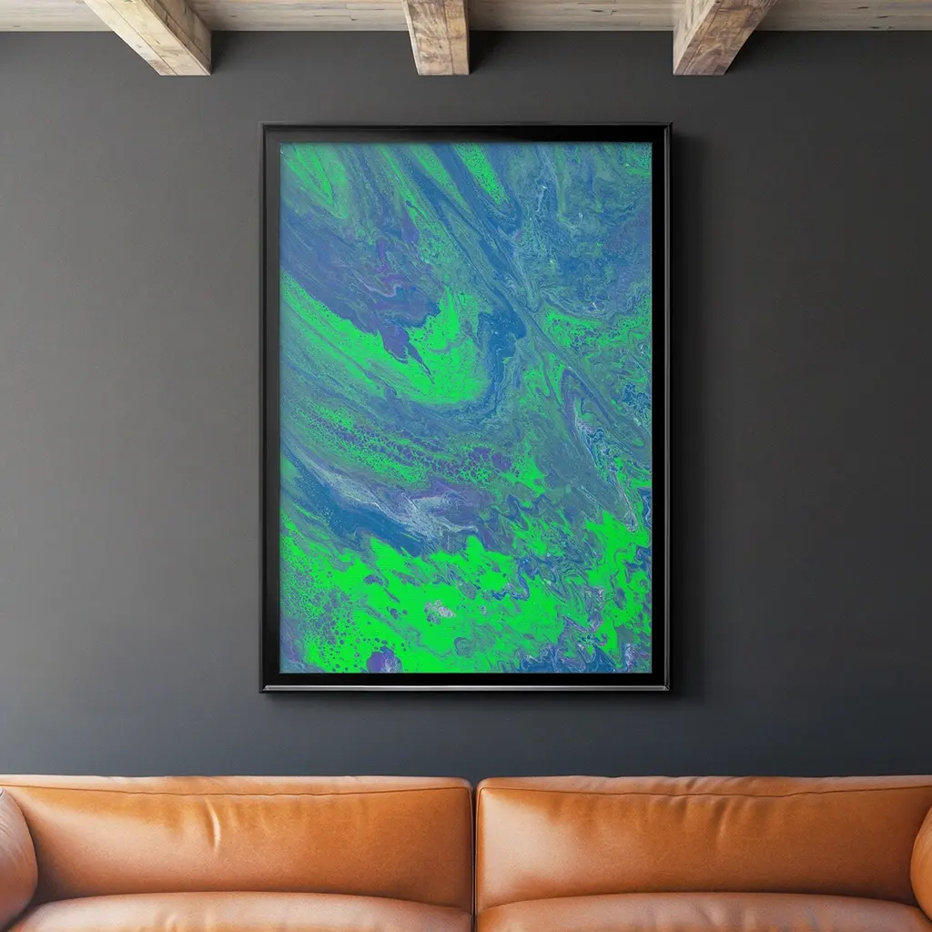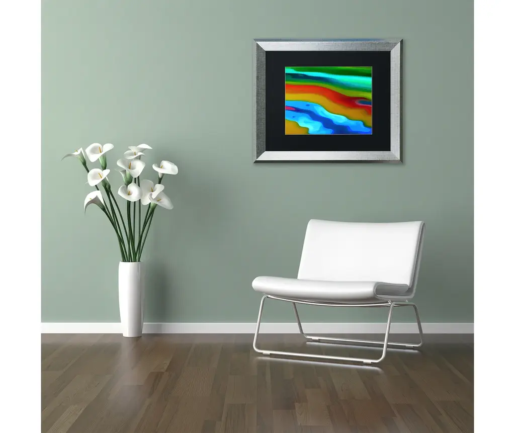 Artist: Amy VangsgardSubject: AbstractStyle: ContemporaryProduct Type: Silver Frame, Black Mat, AcrylicMade in USAThis ready to hang, matted framed art piece features colorful, wavey lines of green, blue, red, and orange.Amy Vangsgard lives in Los Angeles, CA. She graduated from Art Center College of Design. For over 20 years Amy has been an award winning freelance illustrator. She has also taught design and illustration at Otis College of Art and Design. Amy had worked in many media: assemblage, clay, painting, and digital arts. Amy uses both digital photography and digital painting techniques. Her inspiration comes from nature and succulent plants. She is fascinated with the way light illuminates objects and casts interesting shadows.An 11x14 giclee print under acrylic in a 16x20 silver frame. Giclee (jee-clay) is an advanced printmaking process for creating museum quality fine art reproductions. This high quality print is matted using black matting and comes in a silver frame. A clear acrylic facing is added to protect the print. The piece is fully assembled by professional framers and comes ready to hang. The black mat allows the image to really stand out, making it a great addition to any space.