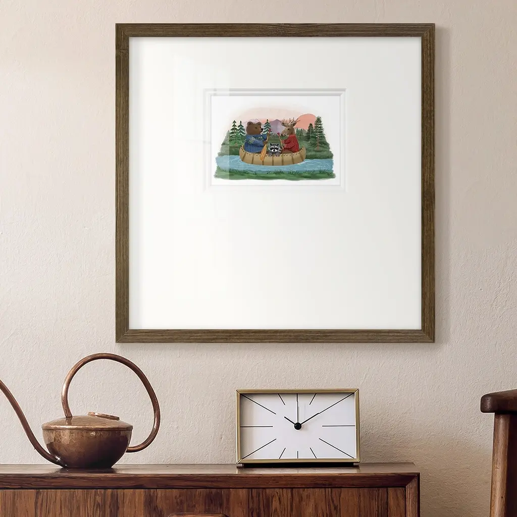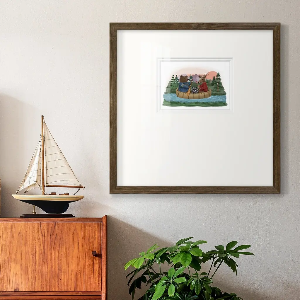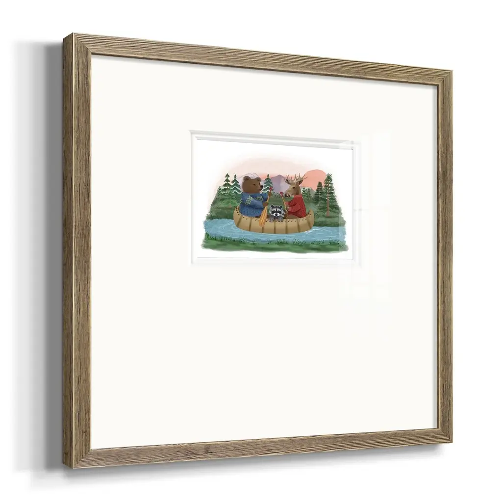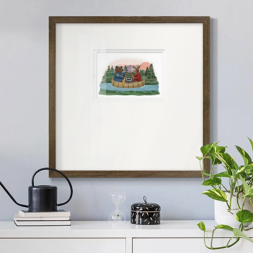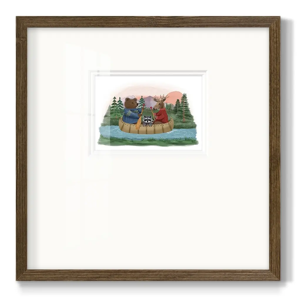 River TripPremium Framed Print A framed cold pressed paper print featuring superior double matting and quality frame. 2 SIZES AVAILABLE 16''X16''' - Overall Size 20''X20''' - Overall Size Each piece is made to order. Each piece comes with hanging hardware. Made in the USA Ready to Hang Giclee Paper Print Plexiglass Beveled Matt Board Double Matte Board