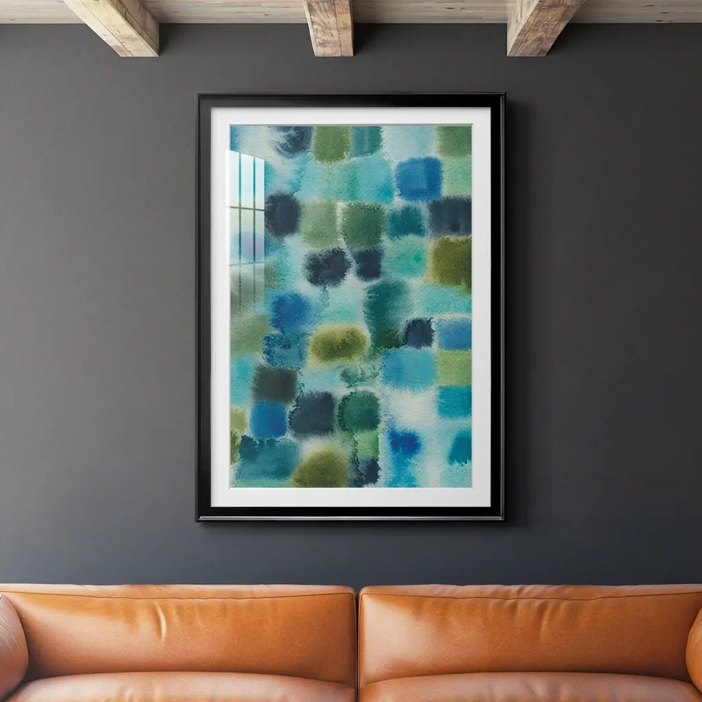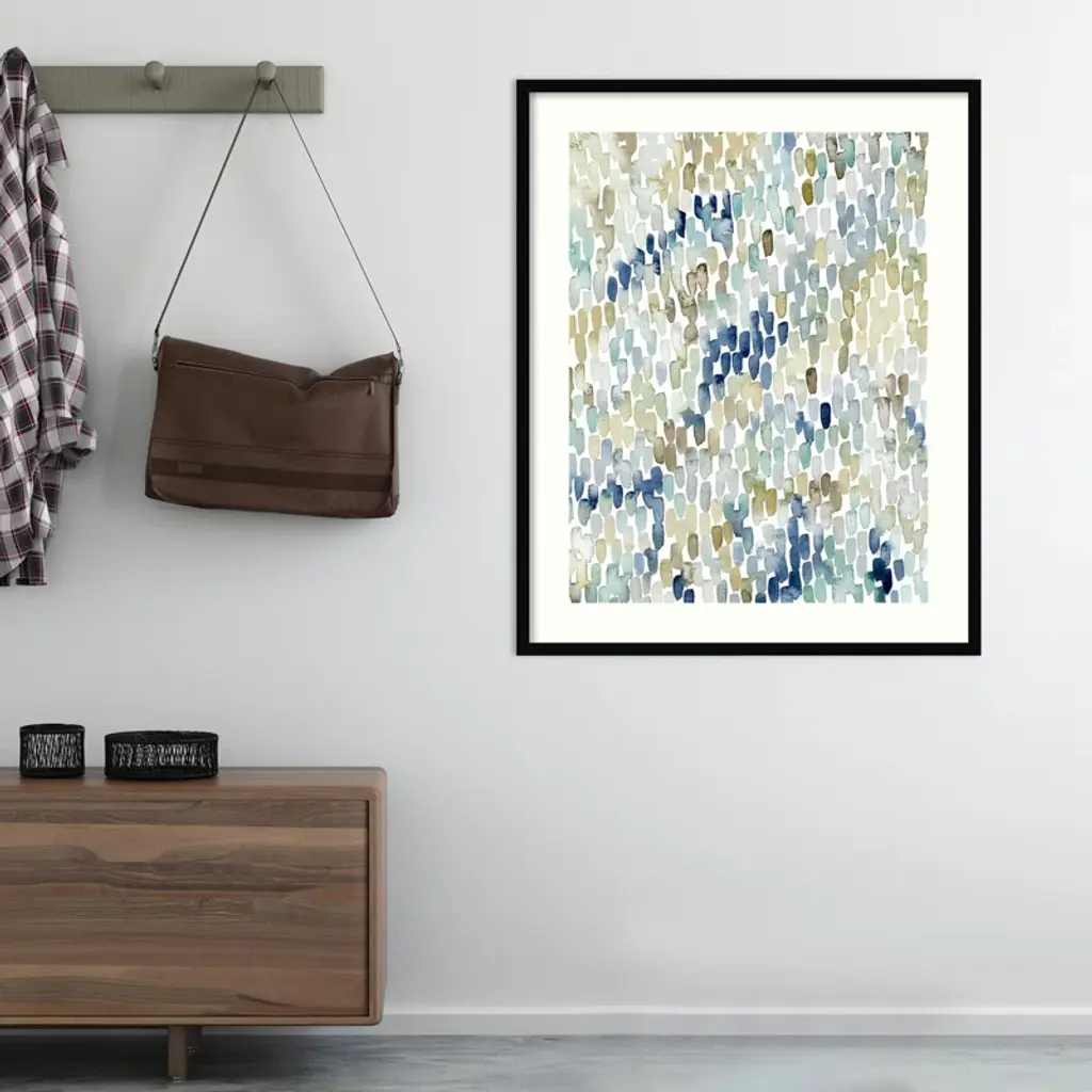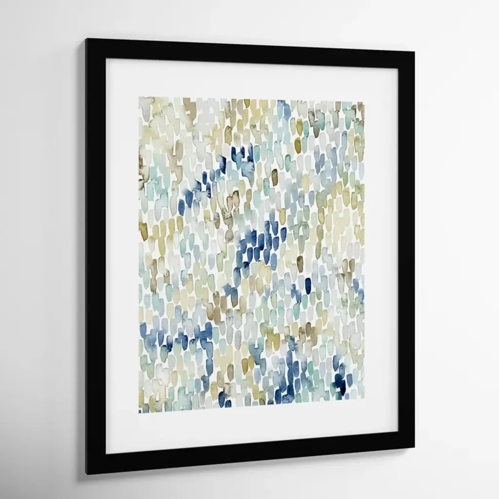 Embrace abstract beauty. This framed wall art showcases a captivating acrylic painting on paper, featuring abstract shapes and vibrant colors. The open corner wood frame adds a modern touch. Hang it in landscape or portrait orientation to complement your space.