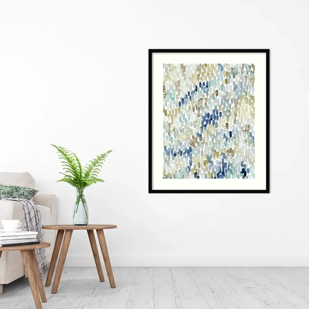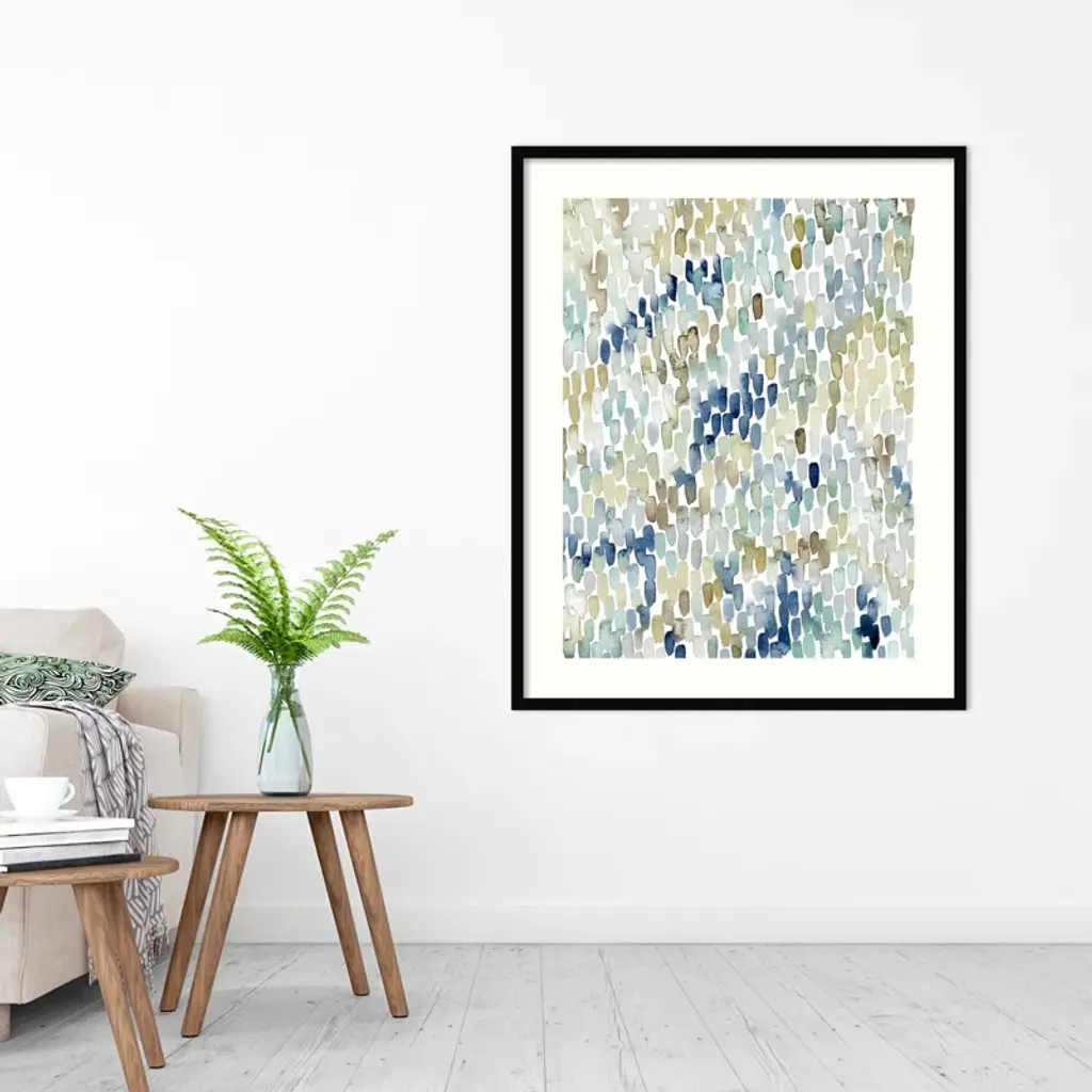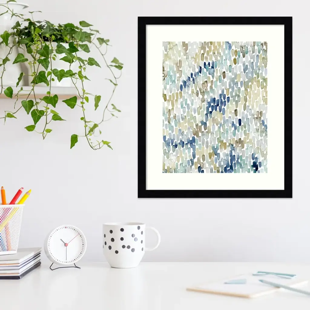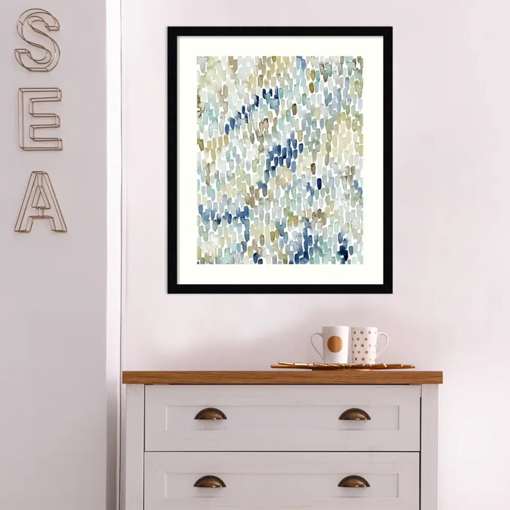 Embrace abstract beauty. This framed wall art showcases a captivating acrylic painting on paper, featuring abstract shapes and vibrant colors. The open corner wood frame adds a modern touch. Hang it in landscape or portrait orientation to complement your space.