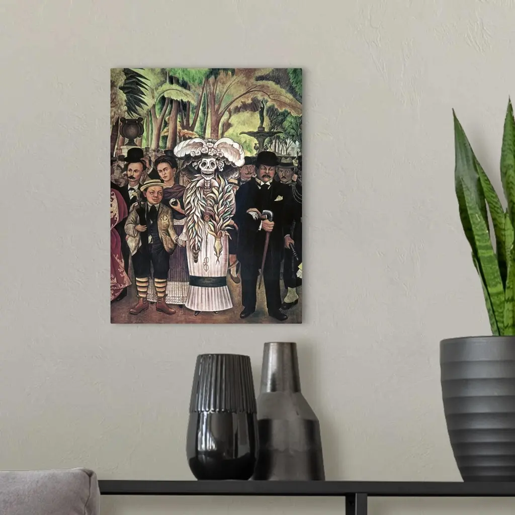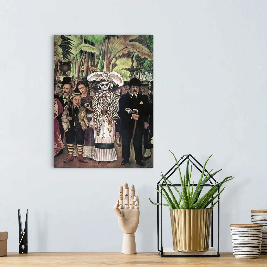 'Dream of a Sunday Afternoon in Alameda Park.' Detail with the Foppish Skeleton, Frida Kahlo, Rivera, Jos? Marti (left) and Jos? Guadalupe Posada (right): mural painting by Diego Rivera (1886-1957).