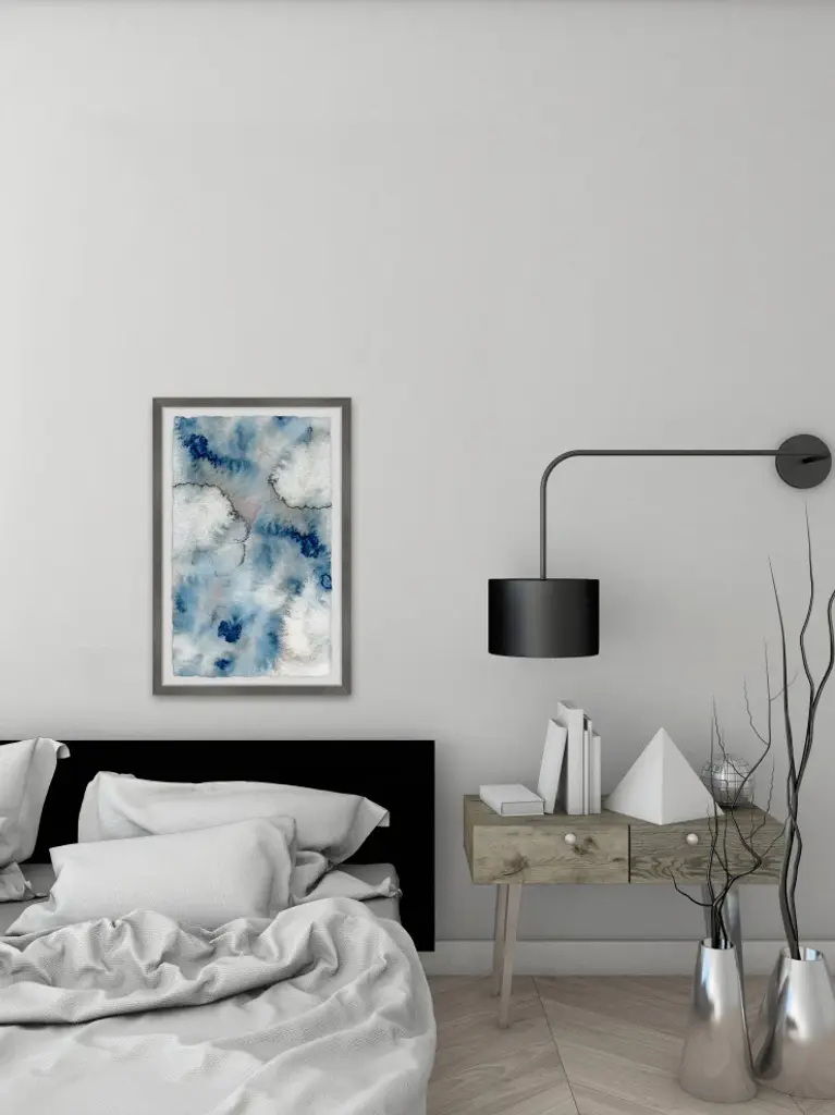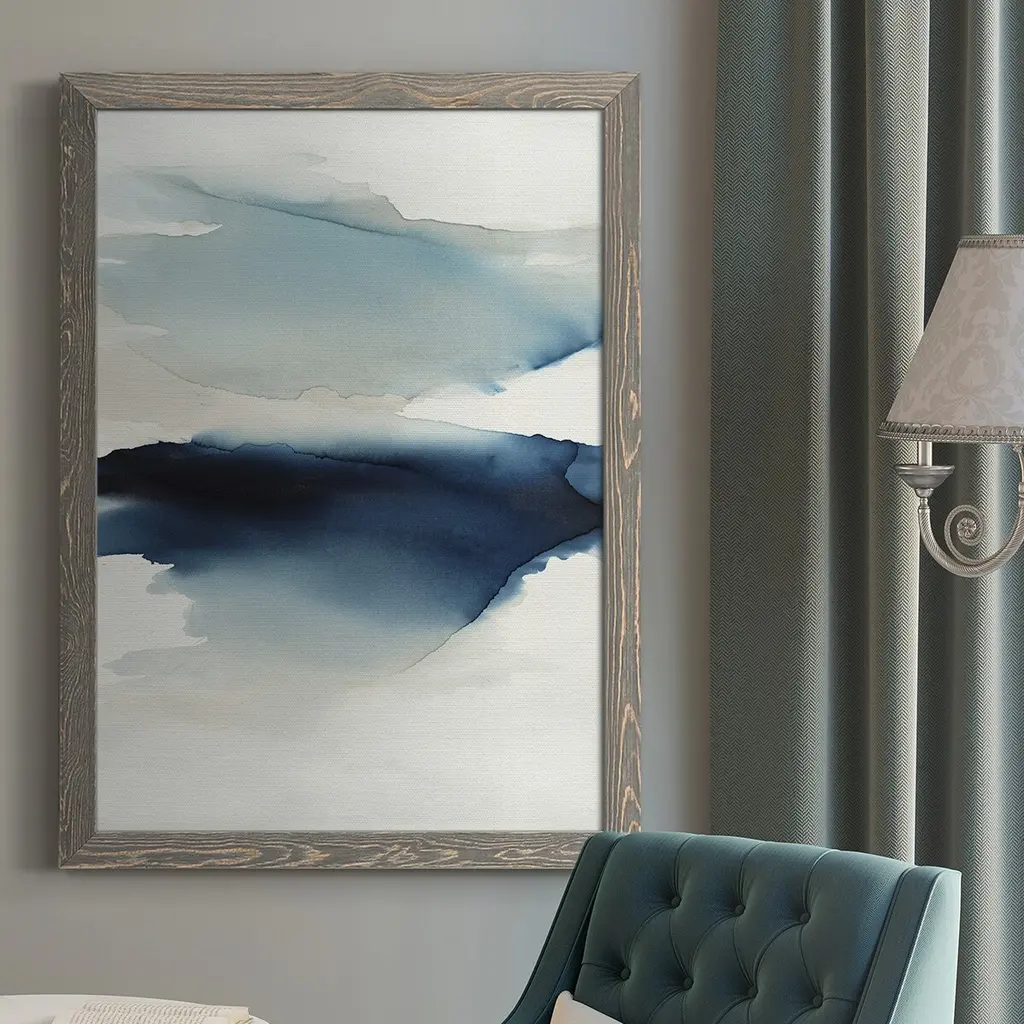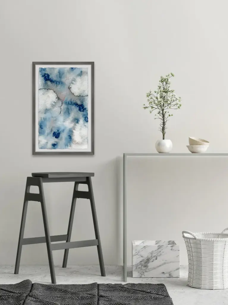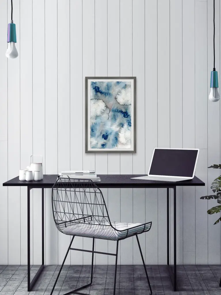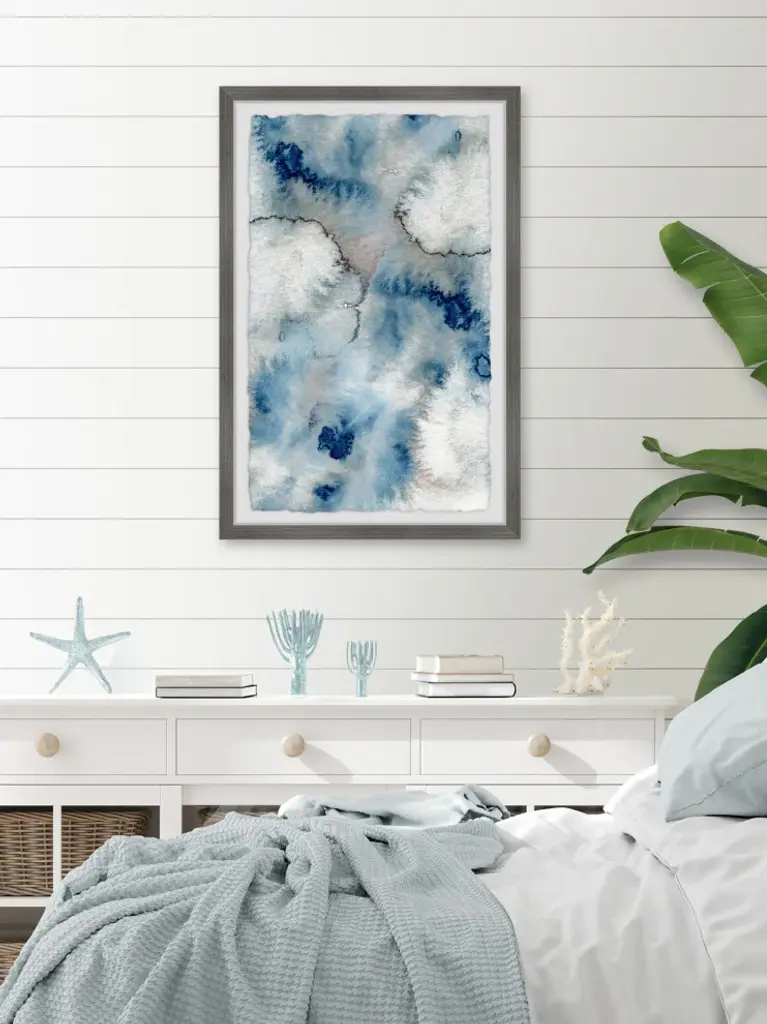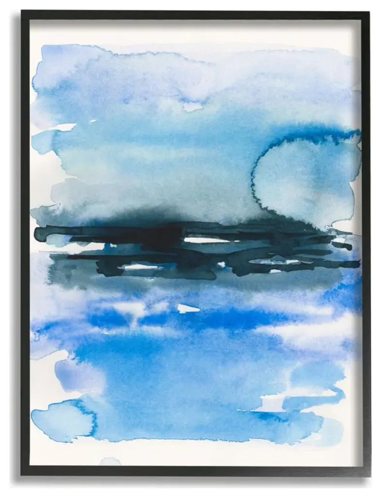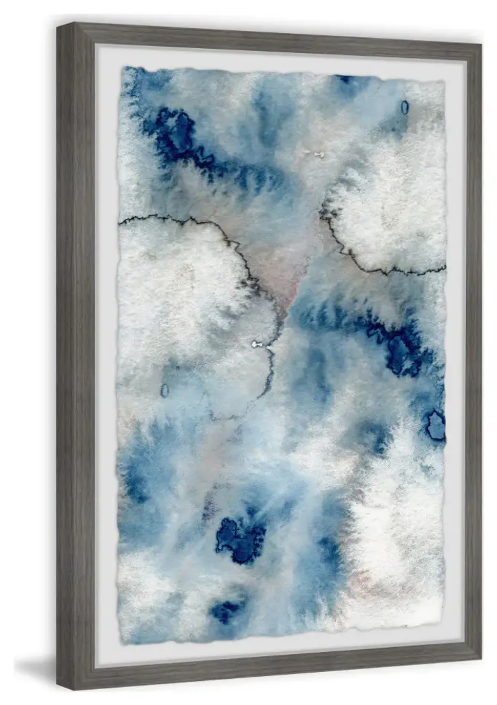 Complement the other modern pieces in your home with this watercolor painting print that features an abstract design rendered in various hues of blue. Proudly printed in the USA, this piece is printed on high quality archive paper and professionally hand-framed. With wall-mounting hooks included, this artful accent is ready to hang up as soon as it reaches your front door.- Top quality Giclee print on high resolution Archive Paper- Hand cut deckled edges- High quality durable non-warping frame- Finished under shatter resistant plexiglass- Arrives ready to hang- Includes a certificate of authenticity- Printed in the USA