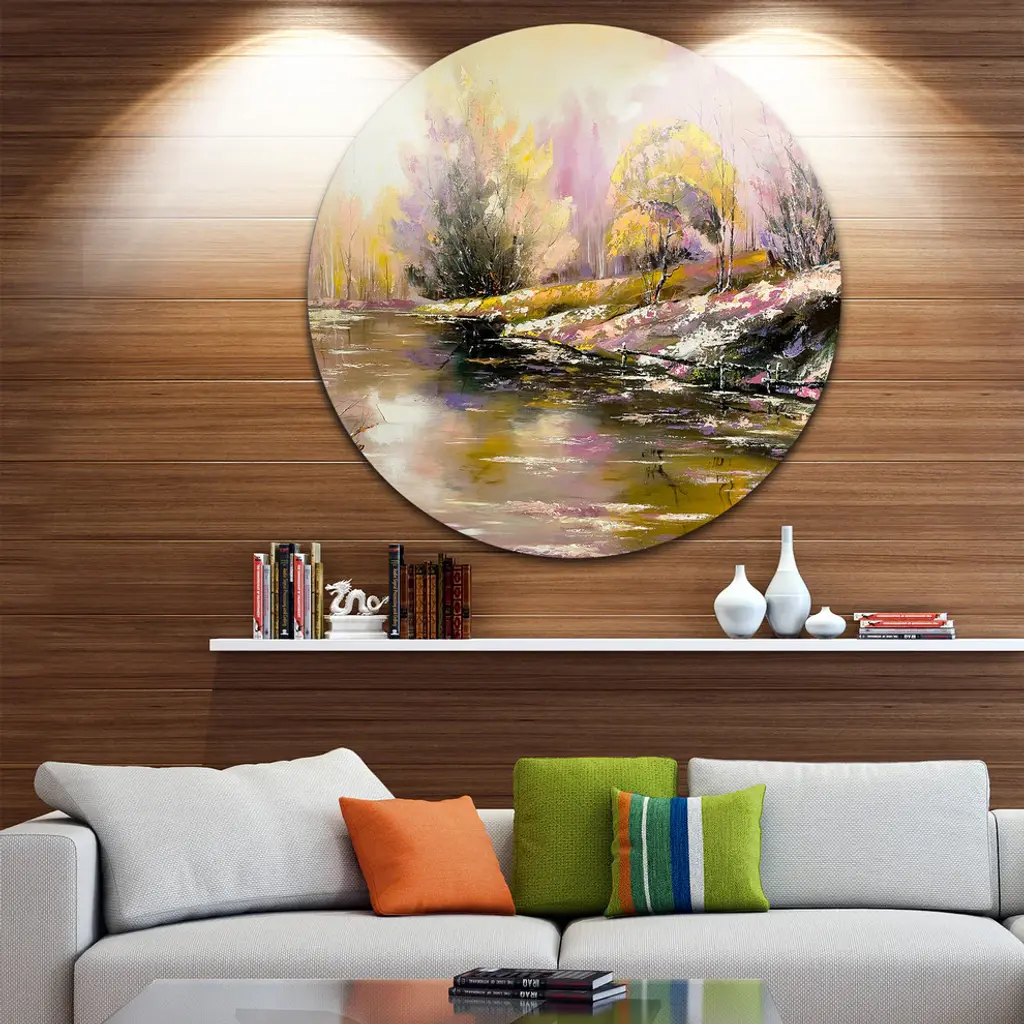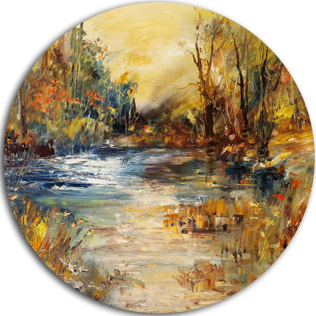 River's Farwell To Autumn, Landscape Large Disc Metal Wall Art, 11"