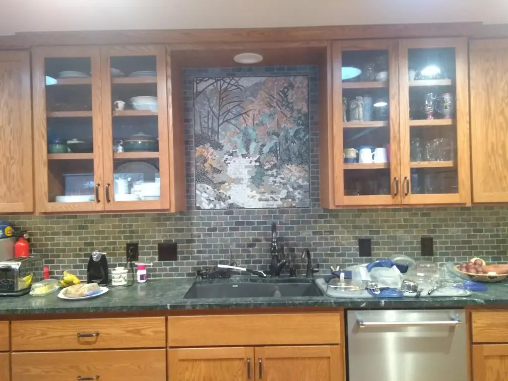 Step into a world of vibrant colors and serene beauty with our exquisite artwork, "Riverside Woodland: Mosaic Landscape." This captivating piece captures the essence of autumn, inviting you to explore the rich tapestry of nature as the leaves transform into a breathtaking palette of warm hues. As you gaze upon this mosaic landscape, you'll find yourself transported to a peaceful riverside woodland, where the gentle babbling of water harmonizes with the rustling of leaves. The intricate details of the mosaic showcase the artistic craftsmanship that brings each element of the scene to life. Every shard of glass and ceramic has been thoughtfully arranged to reflect the shimmering light of the season, creating an immersive experience that enchants the senses.Whether you're an art enthusiast or simply looking to bring a touch of nature's beauty into your home, "Riverside Woodland: Mosaic Landscape" makes for a stunning addition to any space. Its ability to evoke feelings of tranquility and connection with the natural world is unparalleled, making it the perfect focal point for your living room, entryway, or office.Don't miss your chance to own a piece that encapsulates the magical transition of the seasons. Let "Riverside Woodland: Mosaic Landscape" take you on an enchanting journey through autumn's splendor and artistic brilliance. Elevate your decor and indulge in the beauty of nature today.