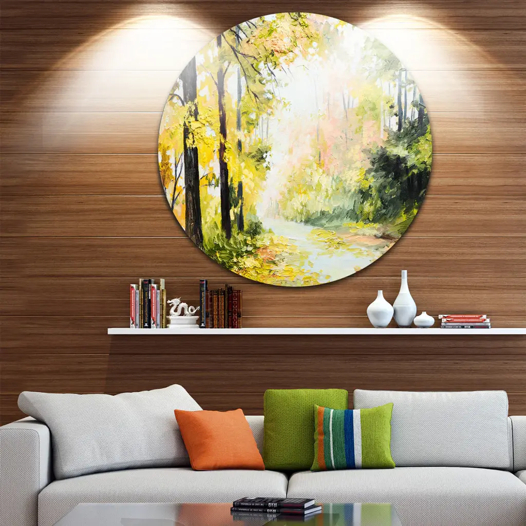 Road In Colorful Forest, Landscape Round Wall Art, 23"