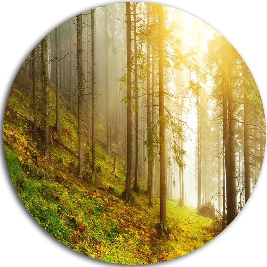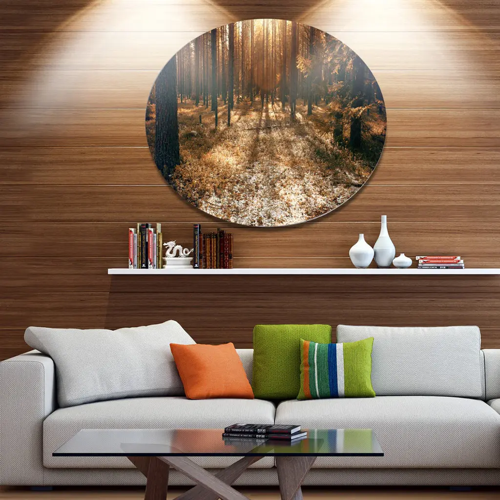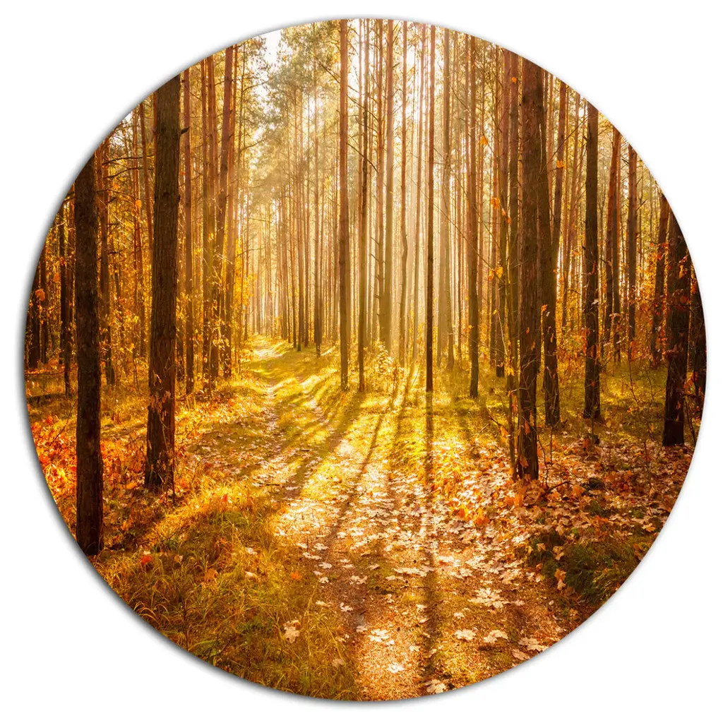 Bring Contemporary Abstraction to your home with this large Circle Metal wall art. This Road in Dark Wooded Forest Metal Artwork makes it the focal point of any room or office. - White Gloss Coating ensures colors are extra vibrant with light reflection.- Aluminum grade Sheet Metal with 1 inch mounting frame on the back giving the illusion that the artwork is floating on the wall..- Mounting Brackets are included along with instructions.- High Quality Digital images are created directly into a glossy aluminum panel producing a stunning and captivating print into the glossy finish of the metal.- Water, Fire and Scratch resistant HD Aluminum panels.- Looks better than any photo paper and guaranteed to last at least 20 years- Easy to clean with a microfiber cloth. Colors are far superior to regular Canvas Art. - Easy to Hang
