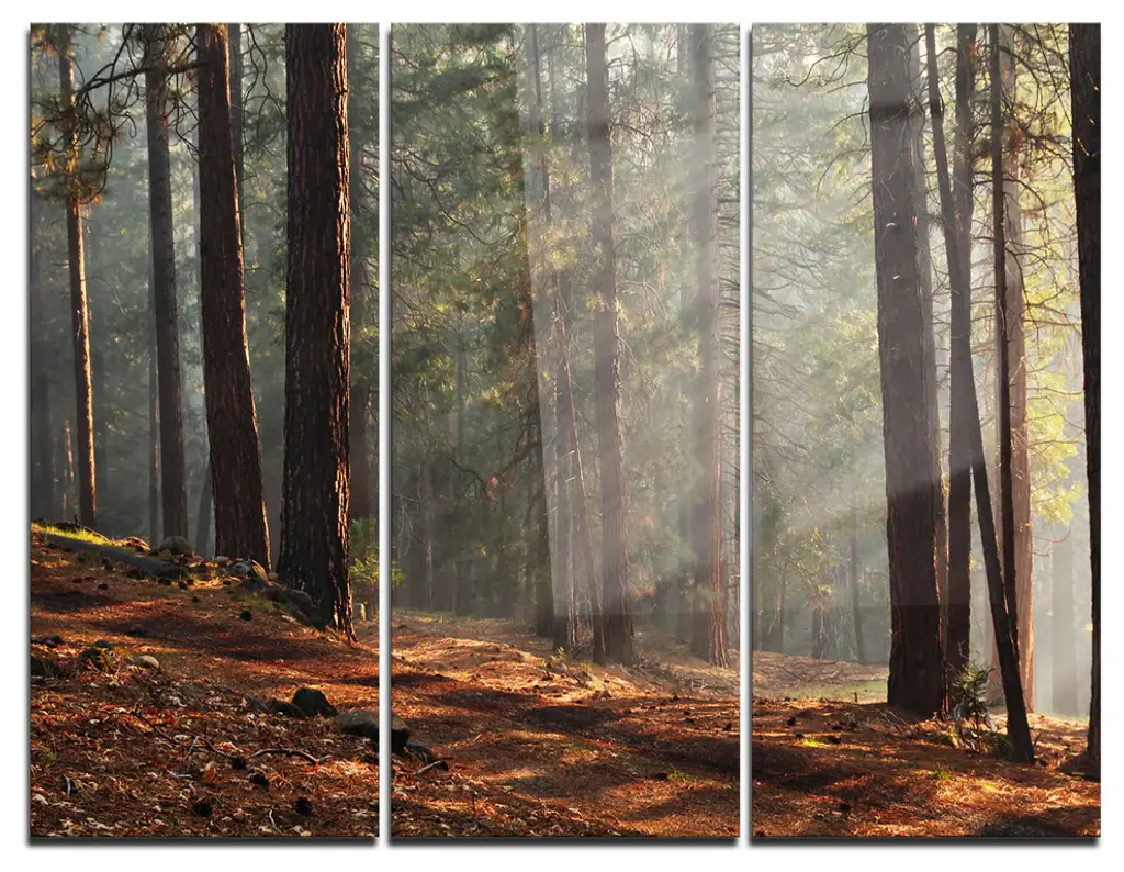 "Road Through Green Pine Forest" Photo Metal Wall Art, 3 Panels, 36"x28"