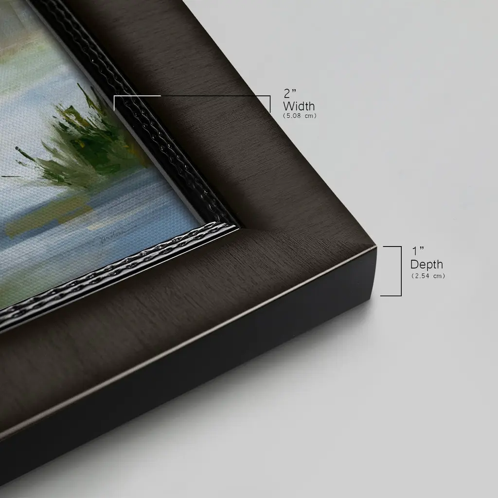 Roads not Taken Premium Framed Canvas- Ready to Hang A Premium Framed Canvas created to last. Framed in distressed wood and available in an array of sizes and colors Featuring a beveled a solid wood stretcher bar, each piece comes ready to hand 3 SIZES AVAILABLE 21''X37'' - Overall Size 25''X45'' - Overall Size 29''x53'' - Overall Size Each piece is made to order. Each piece comes with hanging hardware. Made in the USA Ready to Hang Giclee Paper Print Acrylic Glass Beveled Matt Board