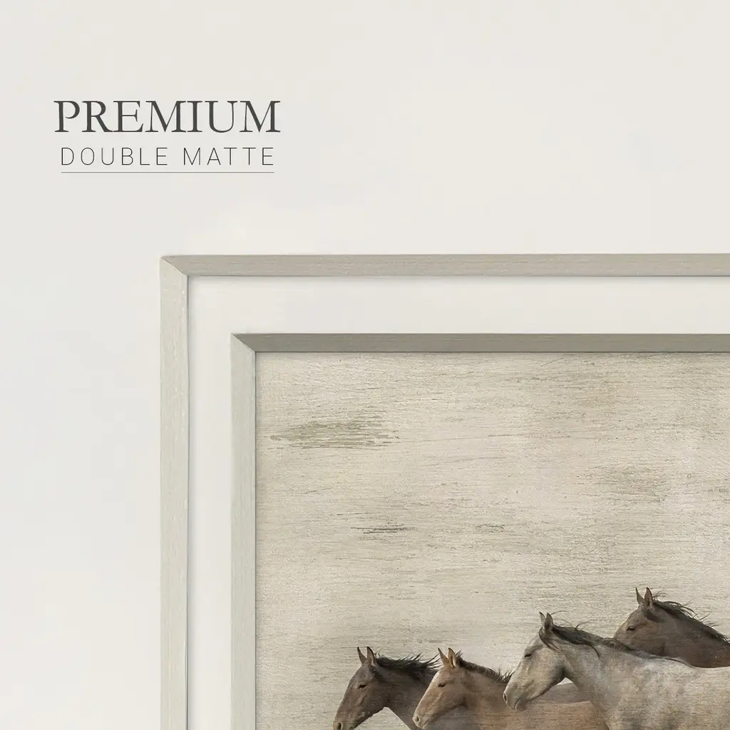 Roaming FreePremium Framed Print A framed cold pressed paper print featuring superior double matting and quality frame. 2 SIZES AVAILABLE 16''X16''' - Overall Size 20''X20''' - Overall Size Each piece is made to order. Each piece comes with hanging hardware. Made in the USA Ready to Hang Giclee Paper Print Plexiglass Beveled Matt Board Double Matte Board