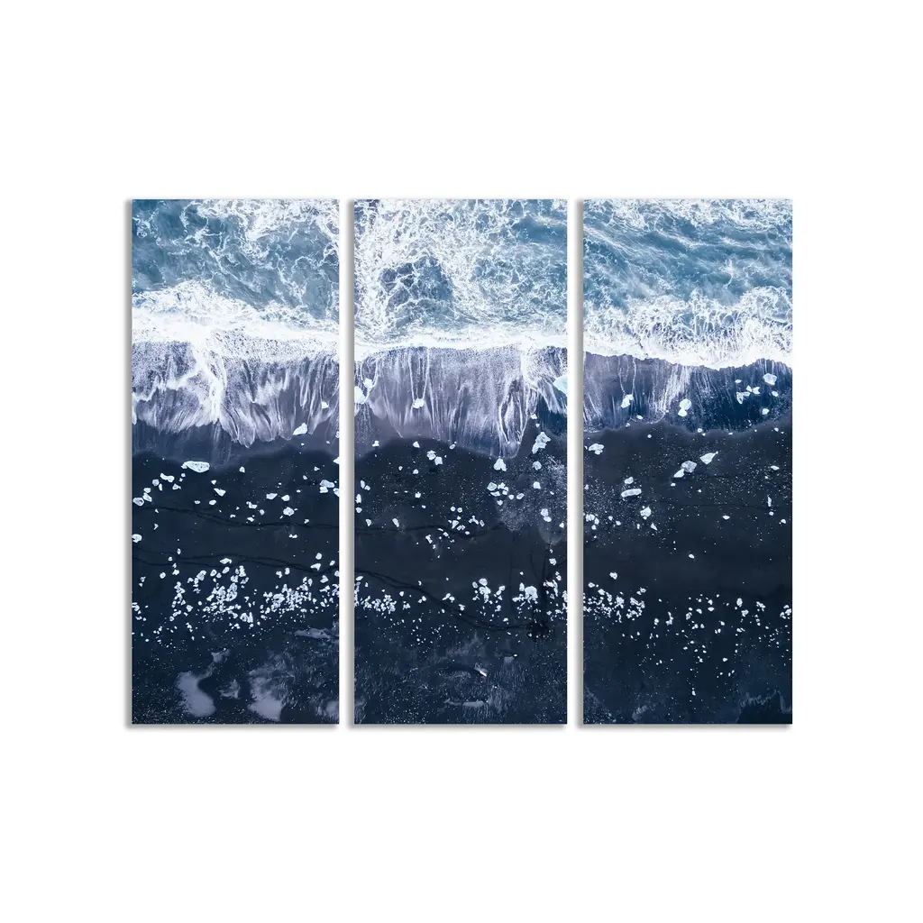 "Roaring Waves Under Cloudy Sky" Metal Wall Art, 3 Panels, 36"x28"