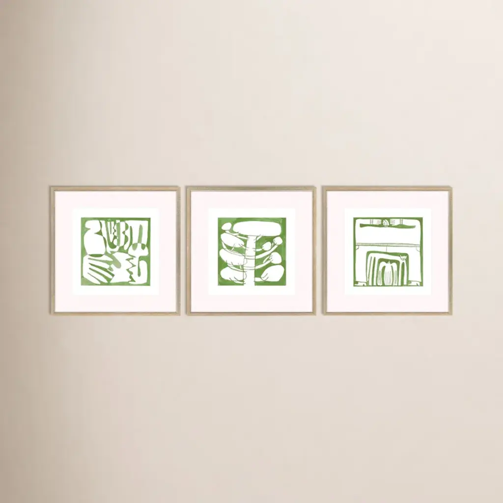 Seen first at One Kings Lane: This abstraction from Rob Delamater is characterized by its incredible balance of form and stunning mix of color. Printed on matte paper, floated over a white mat, and beautifully framed, this triptych arrives ready to hang.