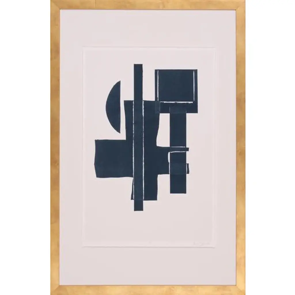 Seen first at One Kings Lane: Full of depth and dimension, this abstraction from Rob Delamater displays layers of geometric shapes in a stunning palette. Printed on matte paper, matted, and beautifully framed, this piece arrives ready to hang.