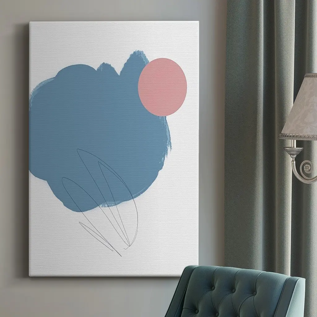 Seen first at One Kings Lane: This abstraction from Rob Delamater displays bright tones of pink, green, and blue that pop against the muted navy background. Printed on matte paper and beautifully framed, this piece arrives ready to hang.
