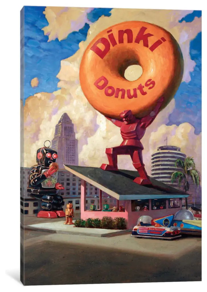 The artwork is crafted with 100-percent cotton artist-grade canvas, professionally hand-stretched and stapled over pine-wood bars in gallery wrap style - a method utilized by artists to present artwork in galleries. Fade-resistant archival inks guarantee perfect color reproduction that remains vibrant for decades even when exposed to strong light. Add brilliance in color and exceptional detail to your space with the contemporary and uncompromising style of iCanvas. Style : "Illustration, Posters, & Graphic Design" Orientation : Vertical Shape : Rectangle Artist : Eric Joyner Height : 18 Width : 12Thickness : 1.5Product Type :Gallery wrapped canvas artNew :Ready to be displayed right out of the box, including free hanging accessories and instructions for a quick and easy hanging process that achieves the best positioning results.Quality Wood Bars :Shrink-resistant wooden-bar frame with tensioning wedges that allow for tightening of the canvas from the reverse side.Dependent and Fast:Produced by the largest US canvas art supplier.