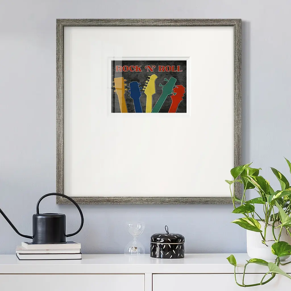 Rock and RollPremium Framed Print A framed cold pressed paper print featuring superior double matting and quality frame. 2 SIZES AVAILABLE 16''X16''' - Overall Size 20''X20''' - Overall Size Each piece is made to order. Each piece comes with hanging hardware. Made in the USA Ready to Hang Giclee Paper Print Plexiglass Beveled Matt Board Double Matte Board