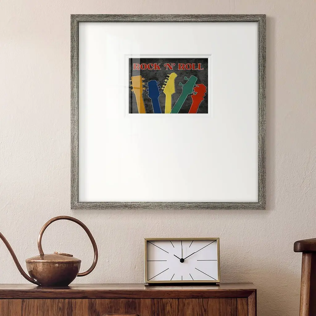 Rock and RollPremium Framed Print A framed cold pressed paper print featuring superior double matting and quality frame. 2 SIZES AVAILABLE 16''X16''' - Overall Size 20''X20''' - Overall Size Each piece is made to order. Each piece comes with hanging hardware. Made in the USA Ready to Hang Giclee Paper Print Plexiglass Beveled Matt Board Double Matte Board