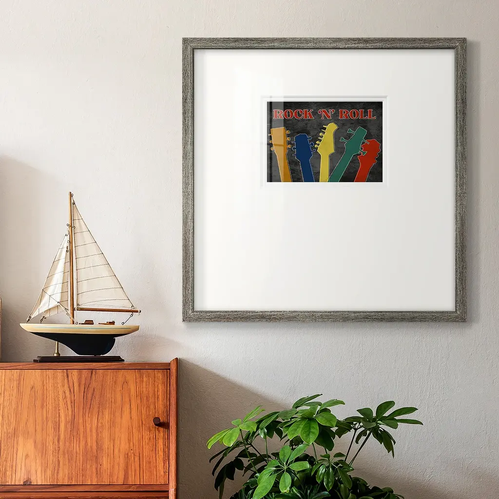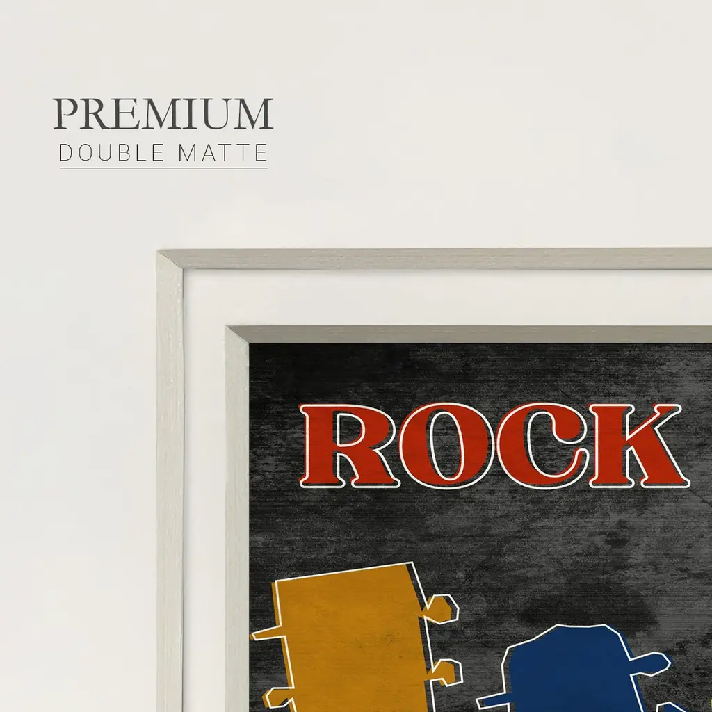 Rock and RollPremium Framed Print A framed cold pressed paper print featuring superior double matting and quality frame. 2 SIZES AVAILABLE 16''X16''' - Overall Size 20''X20''' - Overall Size Each piece is made to order. Each piece comes with hanging hardware. Made in the USA Ready to Hang Giclee Paper Print Plexiglass Beveled Matt Board Double Matte Board