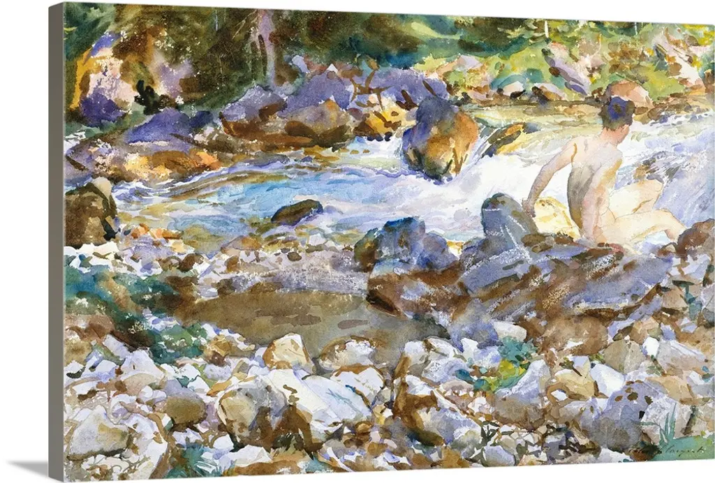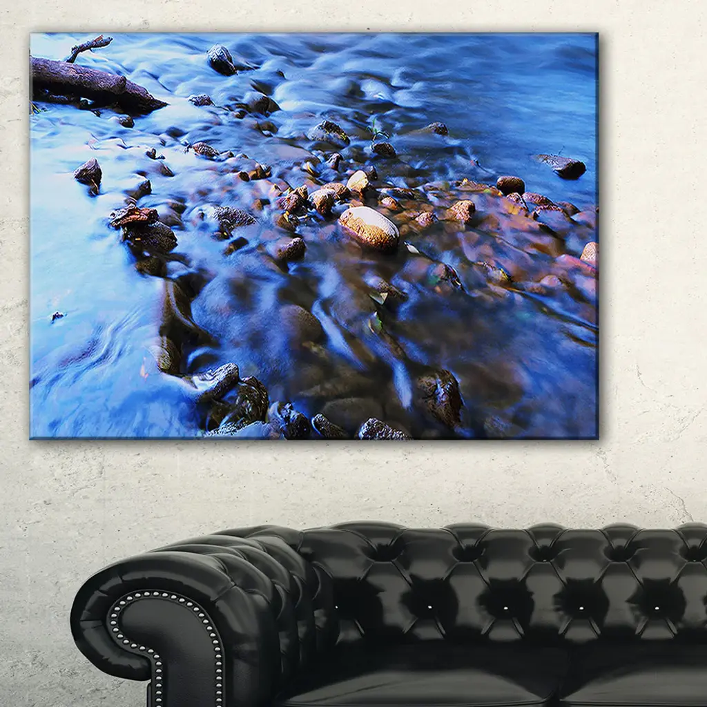 "Rock Blue River Panorama" Oversized Beach Canvas Artwork, 32"x16"