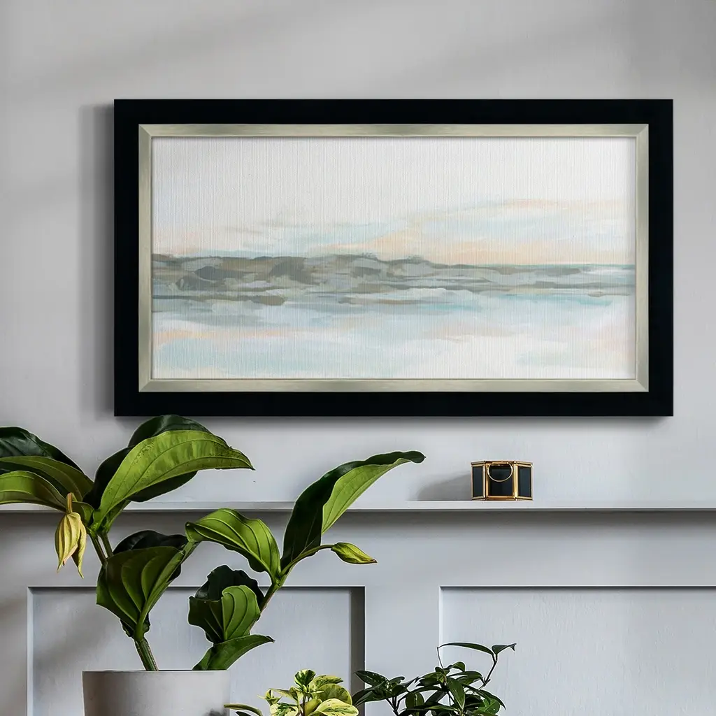 Rock Coast I Premium Framed Canvas- Ready to Hang A Premium Framed Canvas created to last. Framed in distressed wood and available in an array of sizes and colors Featuring a beveled a solid wood stretcher bar, each piece comes ready to hand 3 SIZES AVAILABLE 21''X37'' - Overall Size 25''X45'' - Overall Size 29''x53'' - Overall Size Each piece is made to order. Each piece comes with hanging hardware. Made in the USA Ready to Hang Giclee Paper Print Acrylic Glass Beveled Matt Board