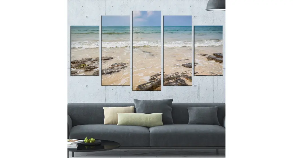 "Rocks On Typical Tropical Beach" Beach Canvas Wall Art, 5 Panels, 60"x32"
