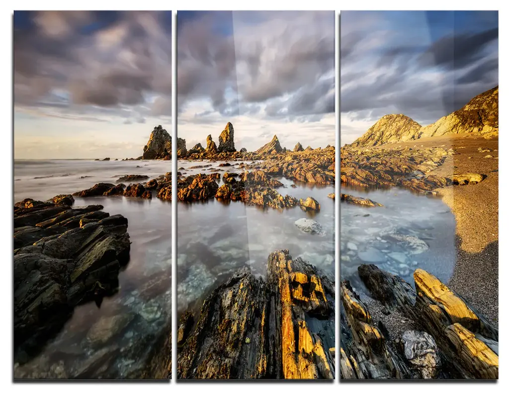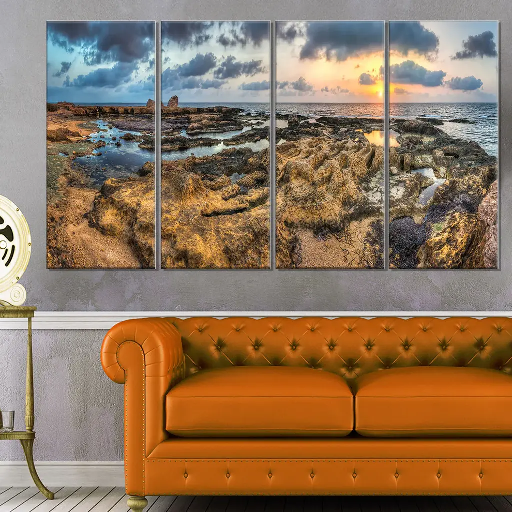 "Rocky African Seashore Panorama" Oversized Beach Wall Art, 4 Panels, 48"x28"