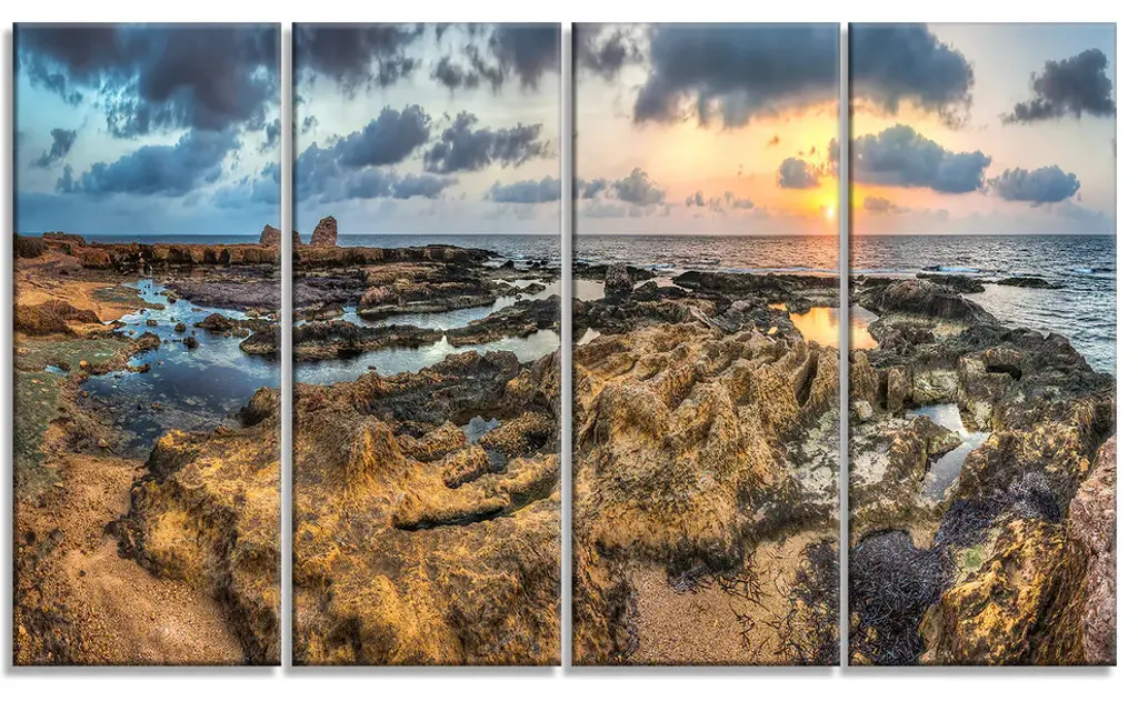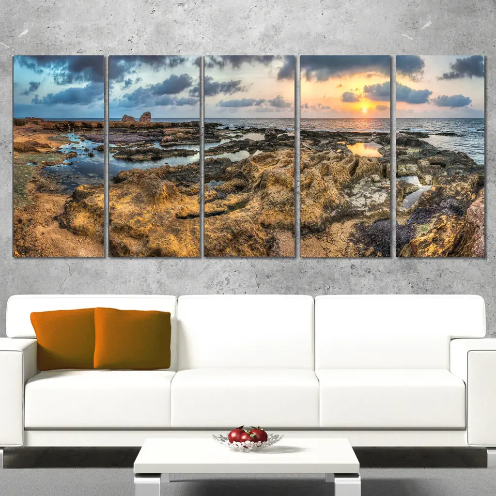 "Rocky African Seashore Panorama" Oversized Beach Wall Art, 5 Panels, 60"x28"
