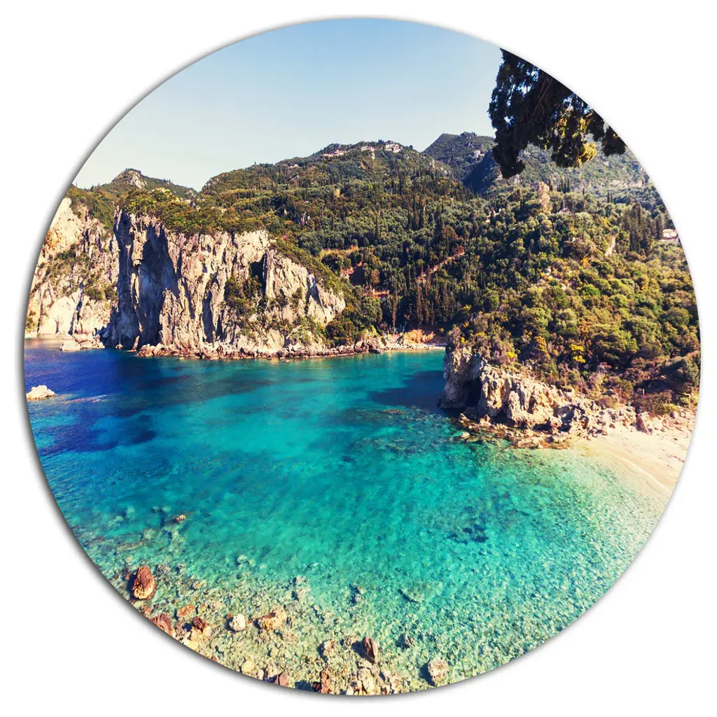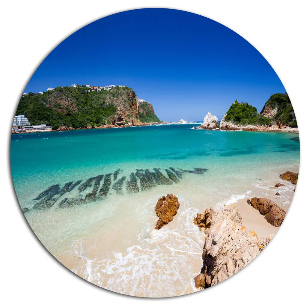 Bring Contemporary Abstraction to your home with this large Circle Metal wall art. This Rocky Beach with Turquoise Water Metal Artwork makes it the focal point of any room or office. - White Gloss Coating ensures colors are extra vibrant with light reflection.- Aluminum grade Sheet Metal with 1 inch mounting frame on the back giving the illusion that the artwork is floating on the wall..- Mounting Brackets are included along with instructions.- High Quality Digital images are created directly into a glossy aluminum panel producing a stunning and captivating print into the glossy finish of the metal.- Water, Fire and Scratch resistant HD Aluminum panels.- Looks better than any photo paper and guaranteed to last at least 20 years- Easy to clean with a microfiber cloth. Colors are far superior to regular Canvas Art. - Easy to Hang
