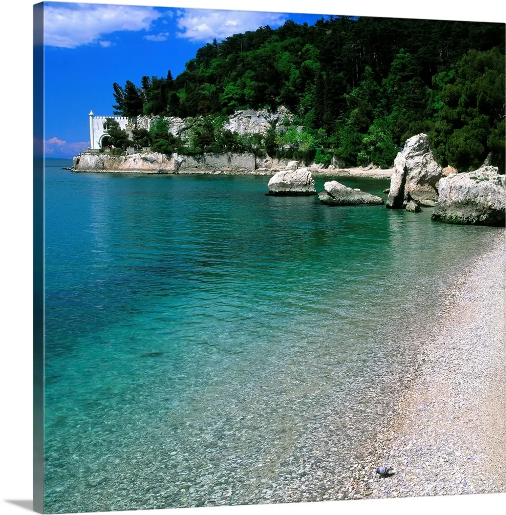 Rocky Beach With Turquoise Water, Beach Disc Metal Artwork, 36"