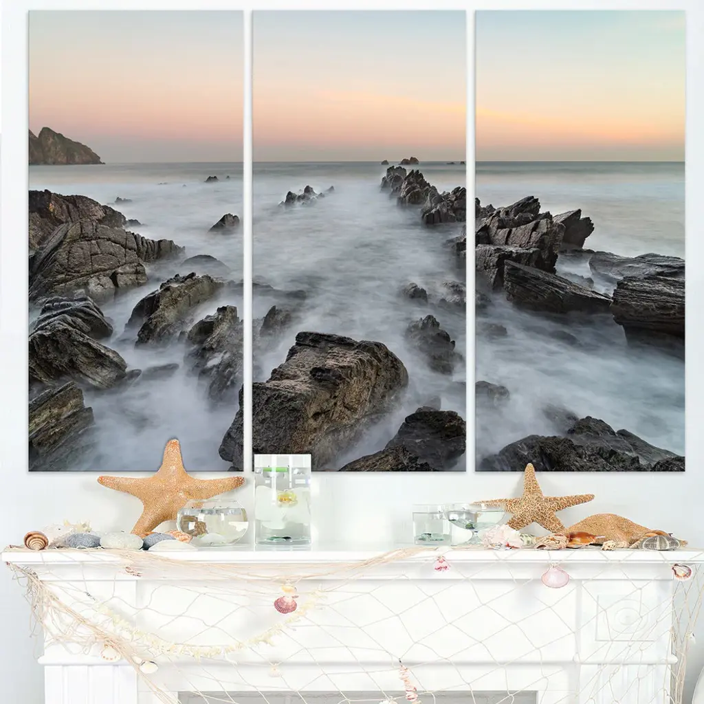 "Rocky Beach With White Waters" Metal Wall Art, 3 Panels, 36"x28"