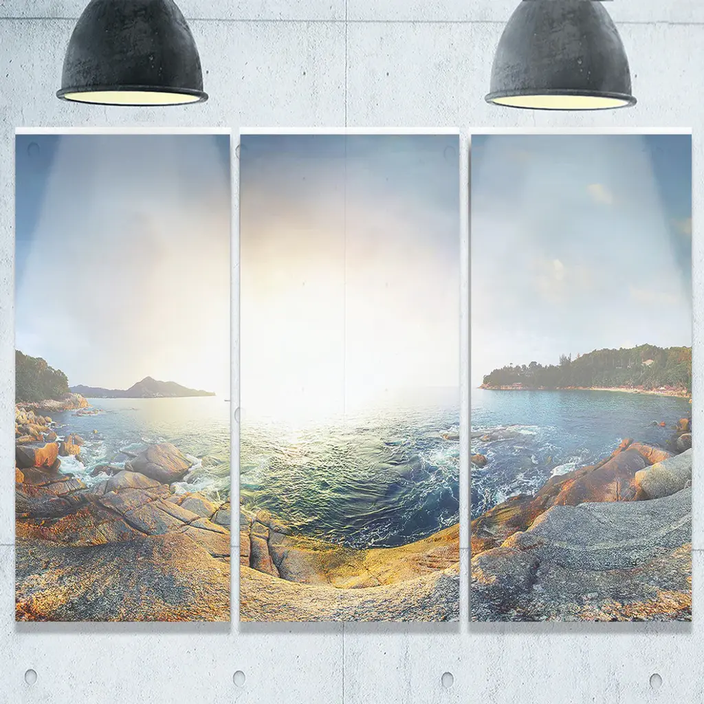 "Rocky Coast In Andaman Sea" Metal Wall Art, 3 Panels, 36"x28"
