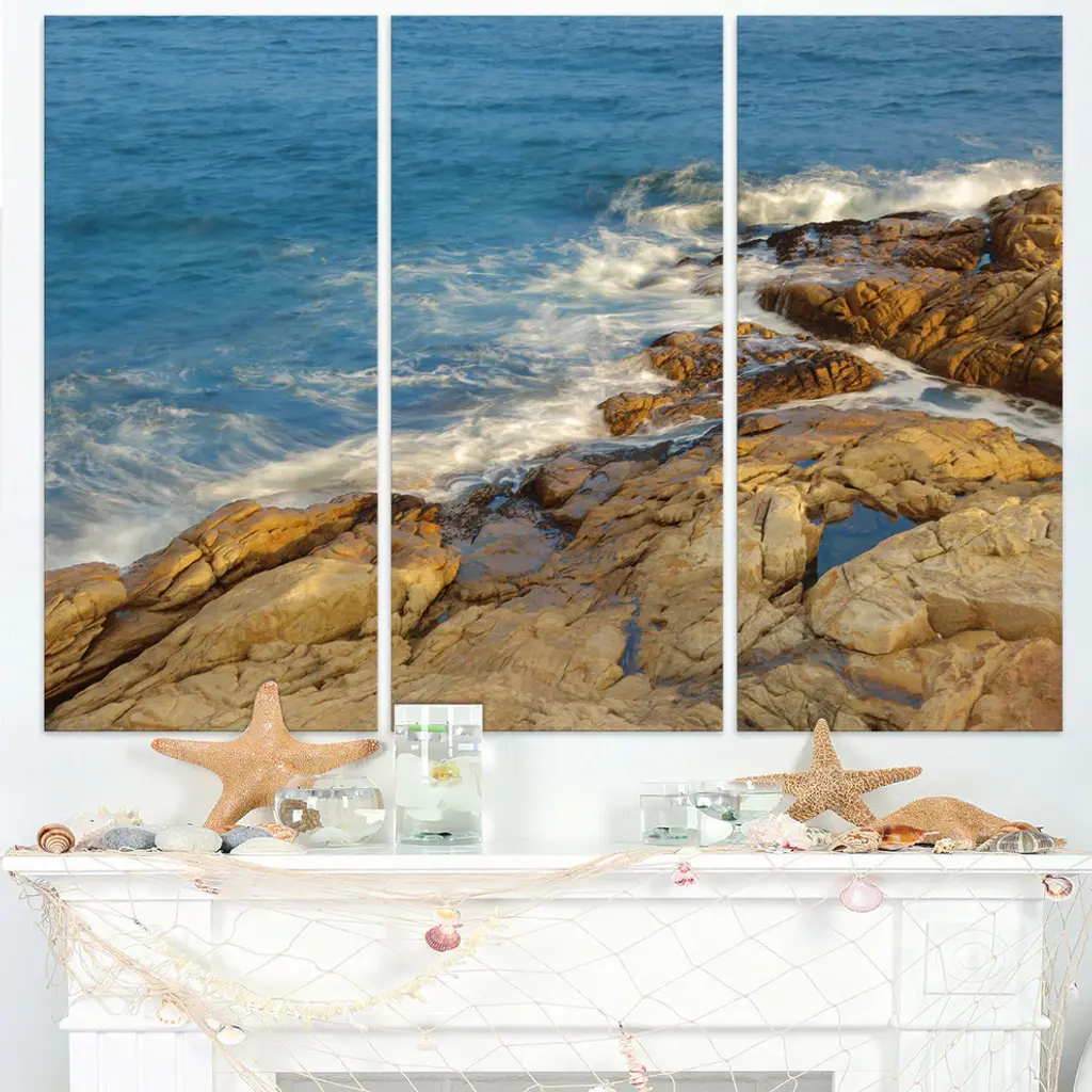"Rocky Hong Kong Seashore" Metal Wall Art, 3 Panels, 36"x28"