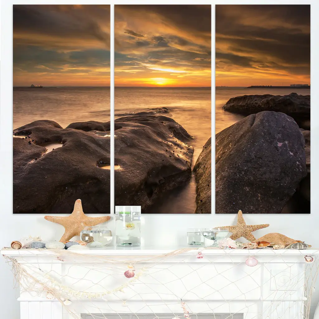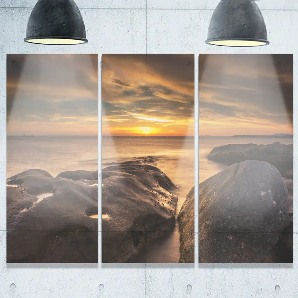 "Rocky La Perouse Beach In Sydney" Metal Wall Art, 3 Panels, 36"x28"