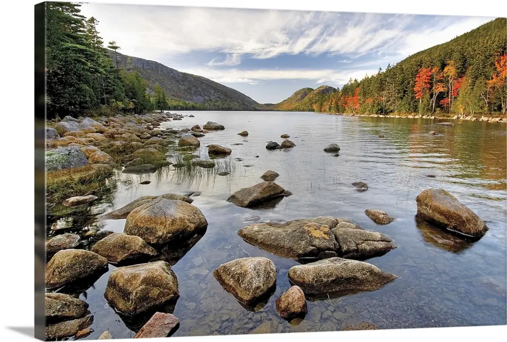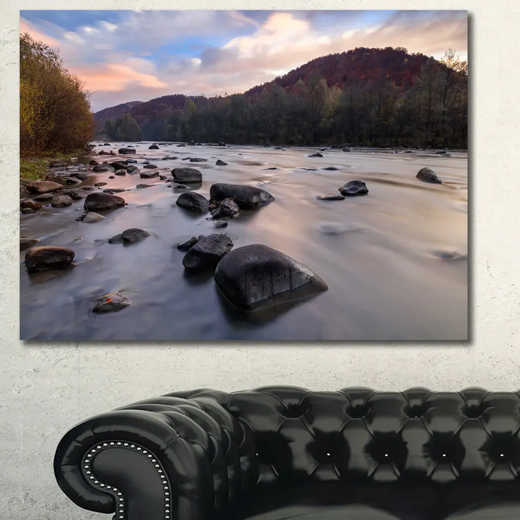 Rocky Mountain River In Autumn, Oversized Seashore Wall Art On Canvas, 60x40