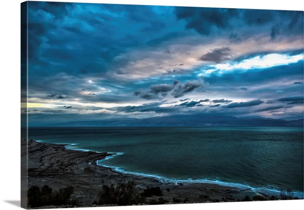 "Rocky Sea With Long Exposure" Seashore Canvas Photo Print, 20"x12"
