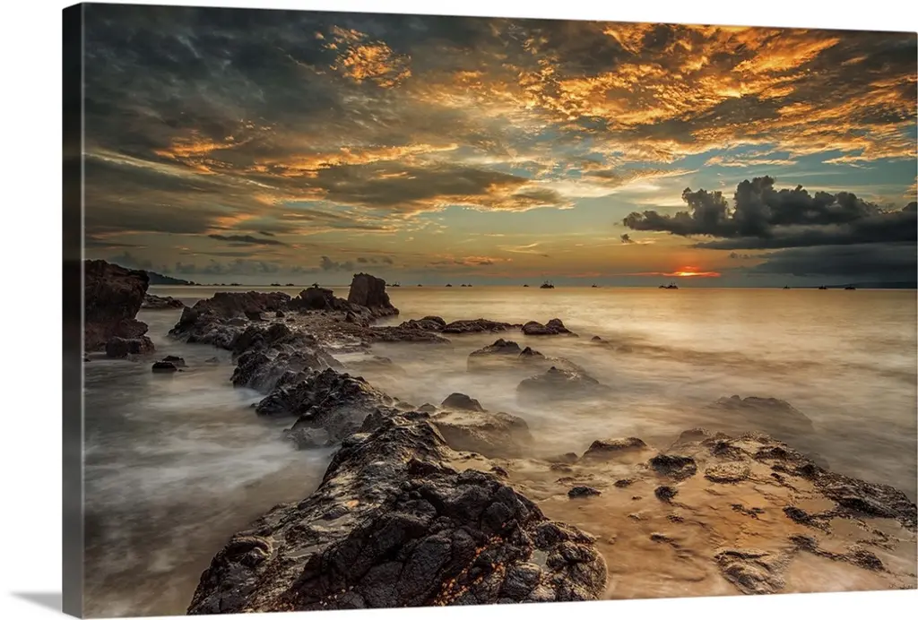 The Rocky Sea with Long Exposure canvas art print is sure to make an impression on anyone who sees it. This artwork is gallery wrapped around a 1-inch solid wood frame and arrives carefully packaged and entirely ready to hang on the wall. Design Art only uses the highest resolution and pigments to ensure a crisp colorful print that is never faded or pixelated. This artwork is sure to be a conversation starter in any home or office.