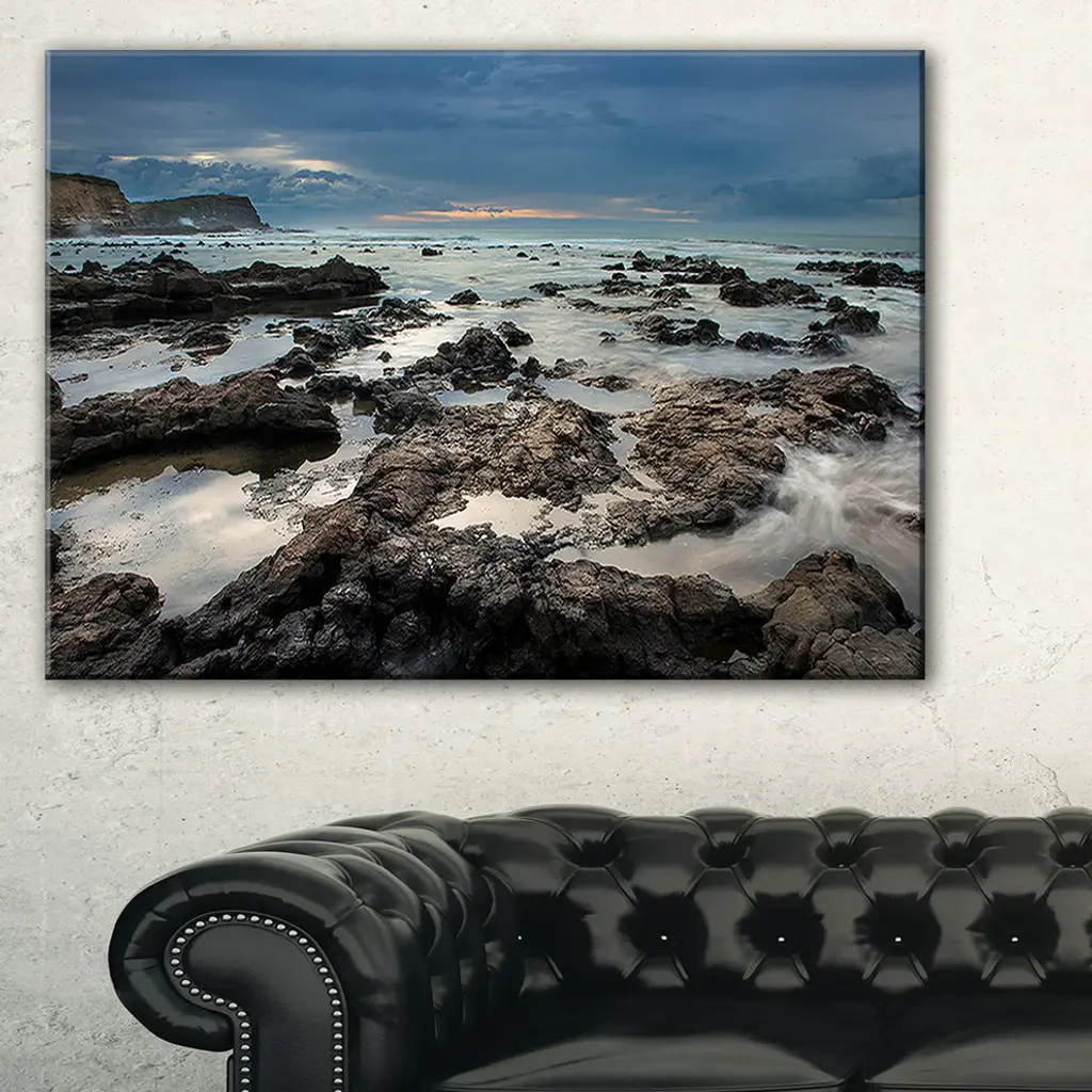The Rocky Seashore with Blue Sky Over canvas art print is sure to make an impression on anyone who sees it. This artwork is gallery wrapped around a 1-inch solid wood frame and arrives carefully packaged and entirely ready to hang on the wall. Design Art only uses the highest resolution and pigments to ensure a crisp colorful print that is never faded or pixelated. This artwork is sure to be a conversation starter in any home or office.