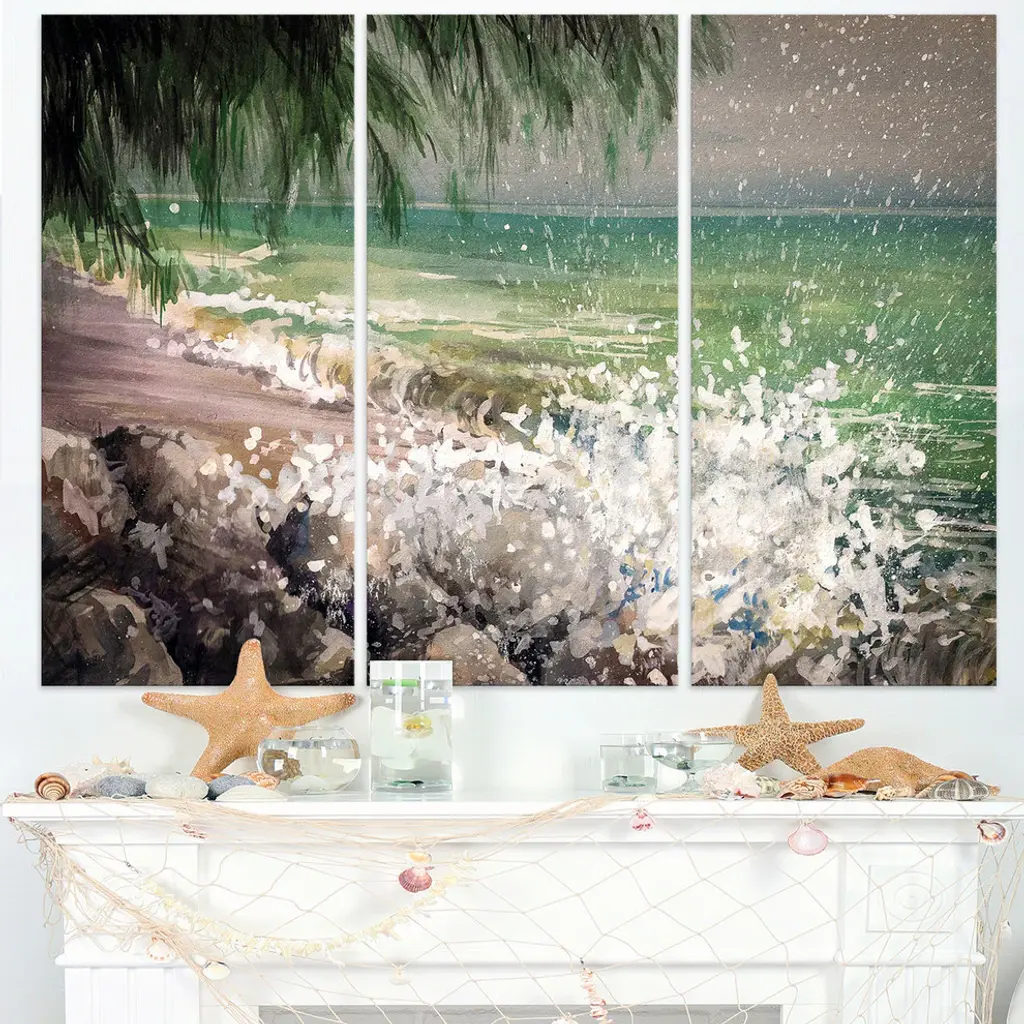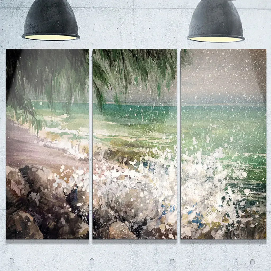 "Rocky Seashore With White Waves" Metal Wall Art, 3 Panels, 36"x28"