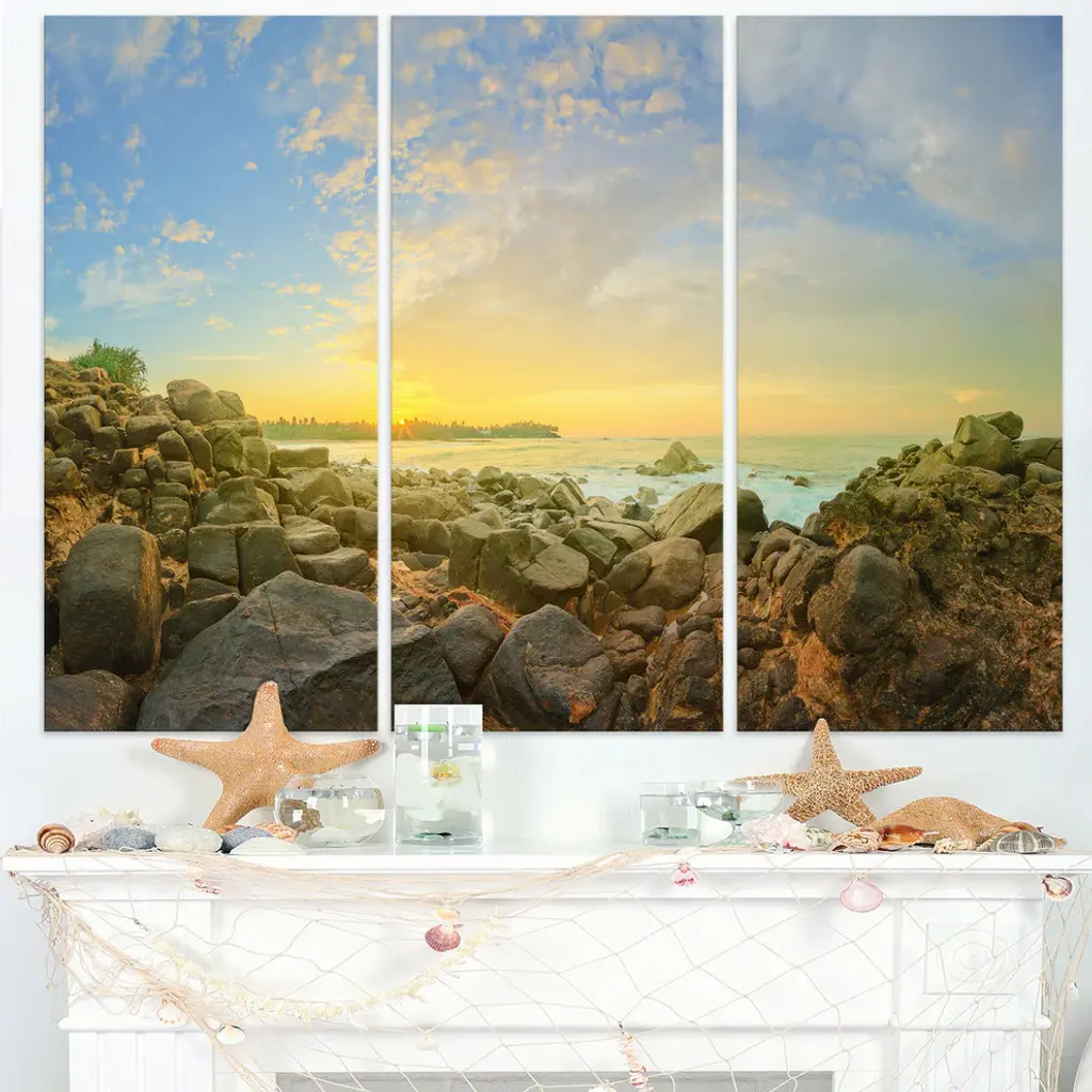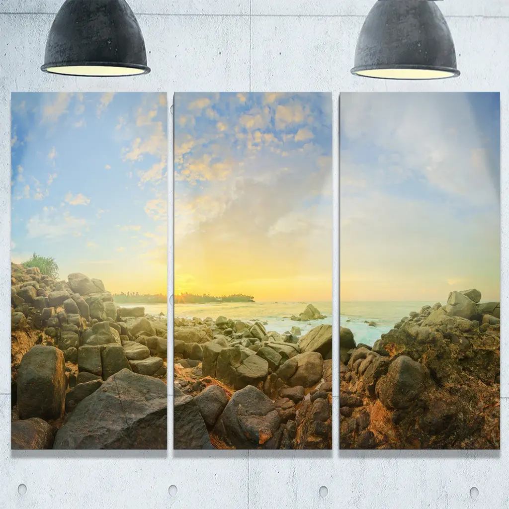 "Rocky Untouched Romantic Seashore" Metal Wall Art, 3 Panels, 36"x28"