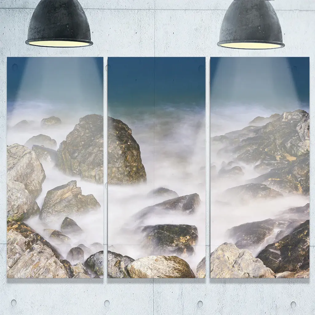 Bring contemporary abstraction to your home with this large 36W x 28H Metal Wall Art. This Rocky Waves at Haeundae Coast Busan Metal Artwork makes it the focal point of any room or office. - White gloss coating ensures colors are extra vibrant with light reflection.- Aluminum grade sheet metal with 1-inch mounting frame on the back giving the illusion that the artwork is floating on the wall.- Mounting brackets are included along with instructions.- High quality digital images are created directly into a glossy aluminum panel producing a stunning and captivating print into the glossy finish of the metal.- Water, fire and scratch resistant HD aluminum panels.- Looks better than any photo paper and guaranteed to last at least 20 years- Easy to clean with a microfiber cloth. Colors are far superior to regular canvas art. - Easy to hang