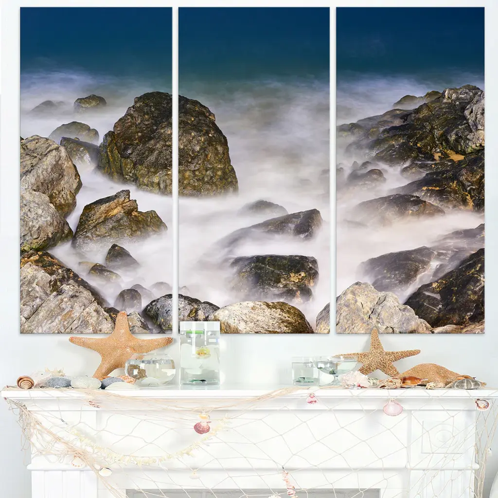 "Rocky Waves At Haeundae Coast Busan" Metal Wall Art, 3 Panels, 36"x28"