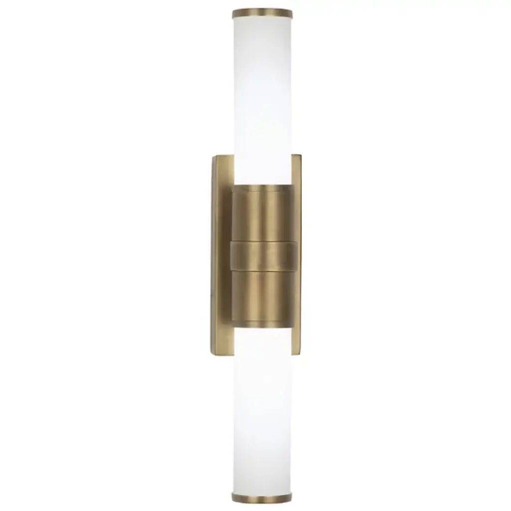 The Robert Abbey Roderick LED Vanity Light provides abundant task lighting while adding an element of distinction to bath decor. The Roderick Vanity Light features dual glass shades and can be mounted horizontally or vertically.