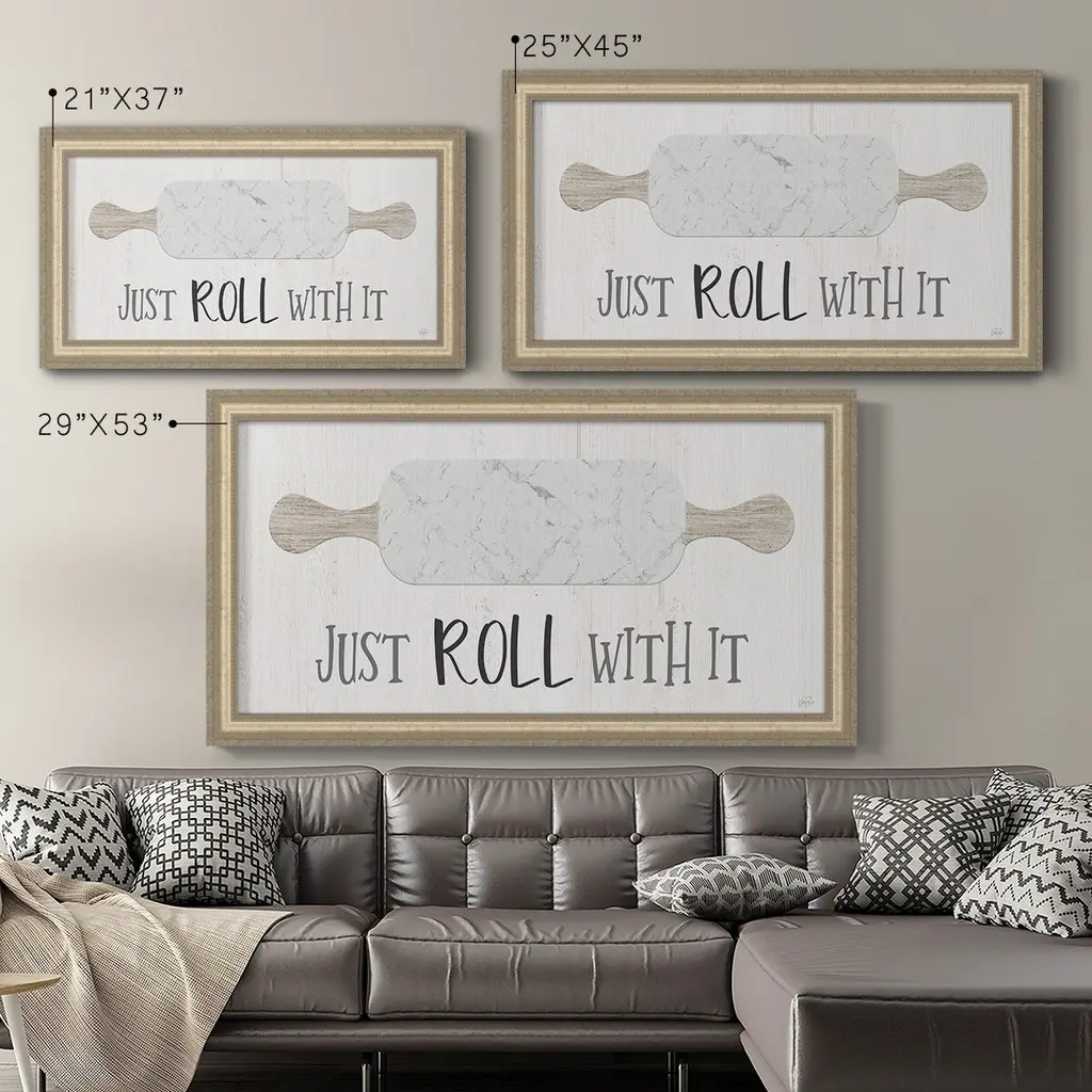 Roll With It Premium Framed Canvas- Ready to Hang A Premium Framed Canvas created to last. Framed in distressed wood and available in an array of sizes and colors Featuring a beveled a solid wood stretcher bar, each piece comes ready to hand 3 SIZES AVAILABLE 21''X37'' - Overall Size 25''X45'' - Overall Size 29''x53'' - Overall Size Each piece is made to order. Each piece comes with hanging hardware. Made in the USA Ready to Hang Giclee Paper Print Acrylic Glass Beveled Matt Board