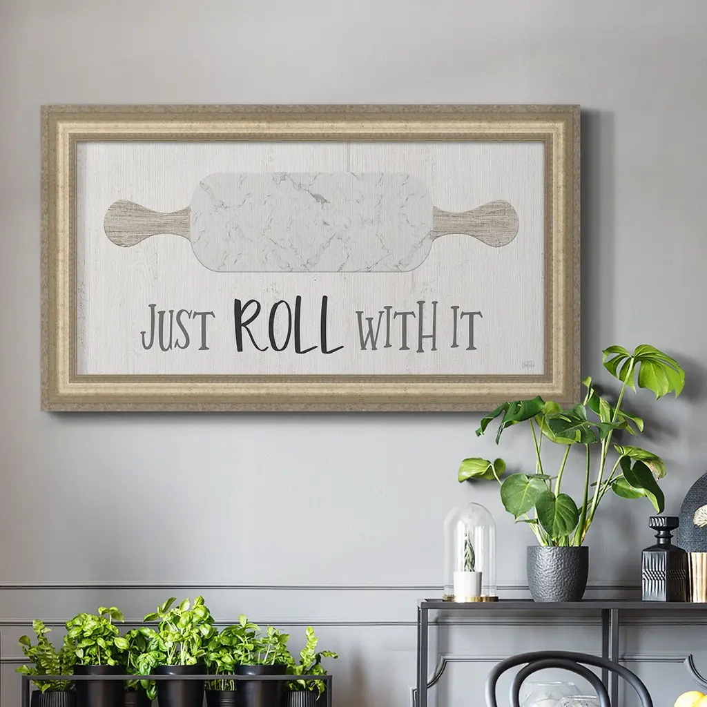 Roll With It Premium Framed Canvas- Ready to Hang A Premium Framed Canvas created to last. Framed in distressed wood and available in an array of sizes and colors Featuring a beveled a solid wood stretcher bar, each piece comes ready to hand 3 SIZES AVAILABLE 21''X37'' - Overall Size 25''X45'' - Overall Size 29''x53'' - Overall Size Each piece is made to order. Each piece comes with hanging hardware. Made in the USA Ready to Hang Giclee Paper Print Acrylic Glass Beveled Matt Board