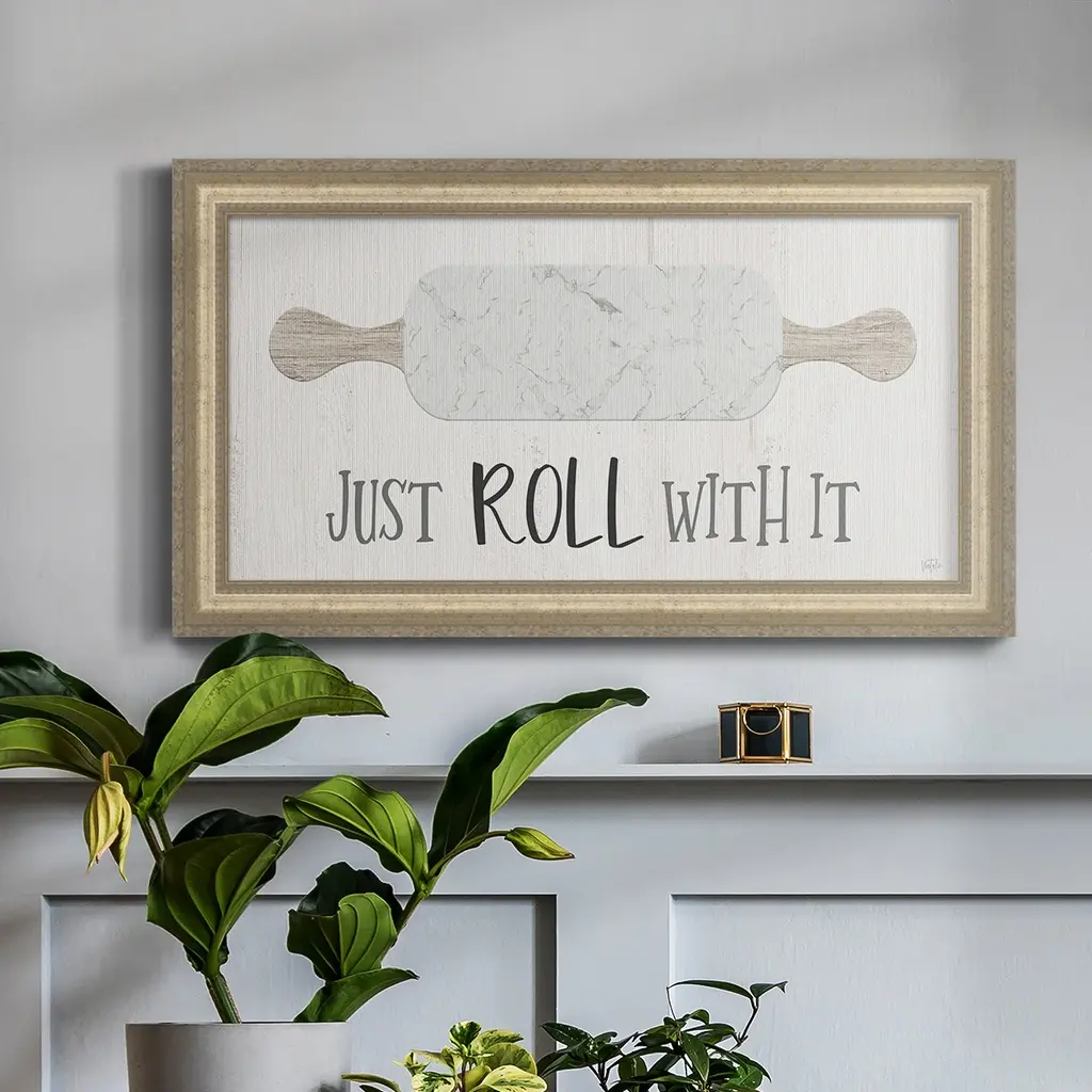 Roll With It Premium Framed Canvas- Ready to Hang A Premium Framed Canvas created to last. Framed in distressed wood and available in an array of sizes and colors Featuring a beveled a solid wood stretcher bar, each piece comes ready to hand 3 SIZES AVAILABLE 21''X37'' - Overall Size 25''X45'' - Overall Size 29''x53'' - Overall Size Each piece is made to order. Each piece comes with hanging hardware. Made in the USA Ready to Hang Giclee Paper Print Acrylic Glass Beveled Matt Board